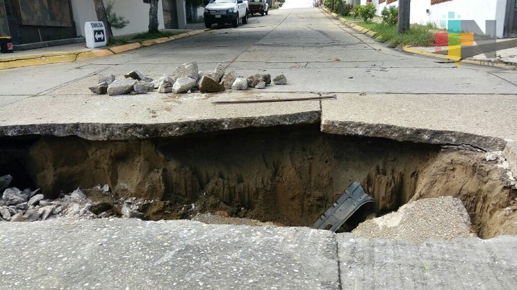 El hoyanco de tres metros de largo y dos de profundidad se formó debido a una fuga de agua y a las lluvias de las últimas horas, lo que provocó el reblandecimiento de la tierra y las placas de concreto.