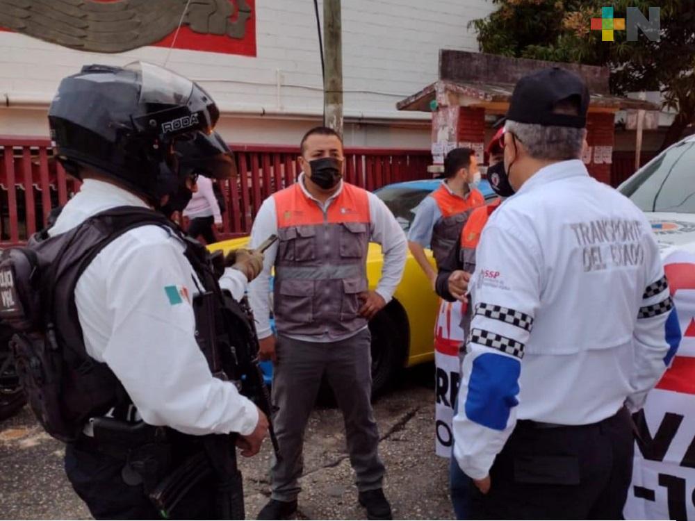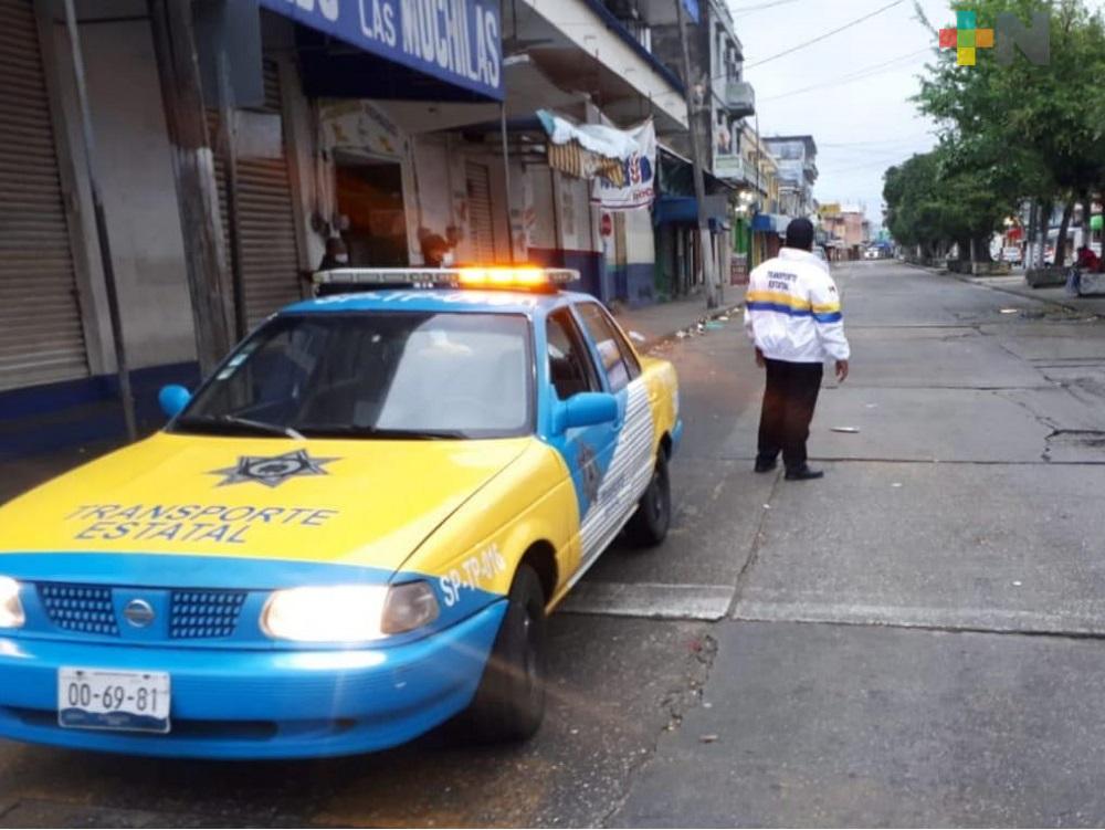 Coatzacoalcos, Ver.- En el primer cuadro de Coatzacoalcos arrancó el operativo de la delegación de Transporte Público y personal de la Secretaría de Salud por la Alerta Preventiva por el virus SARS-Cov2.