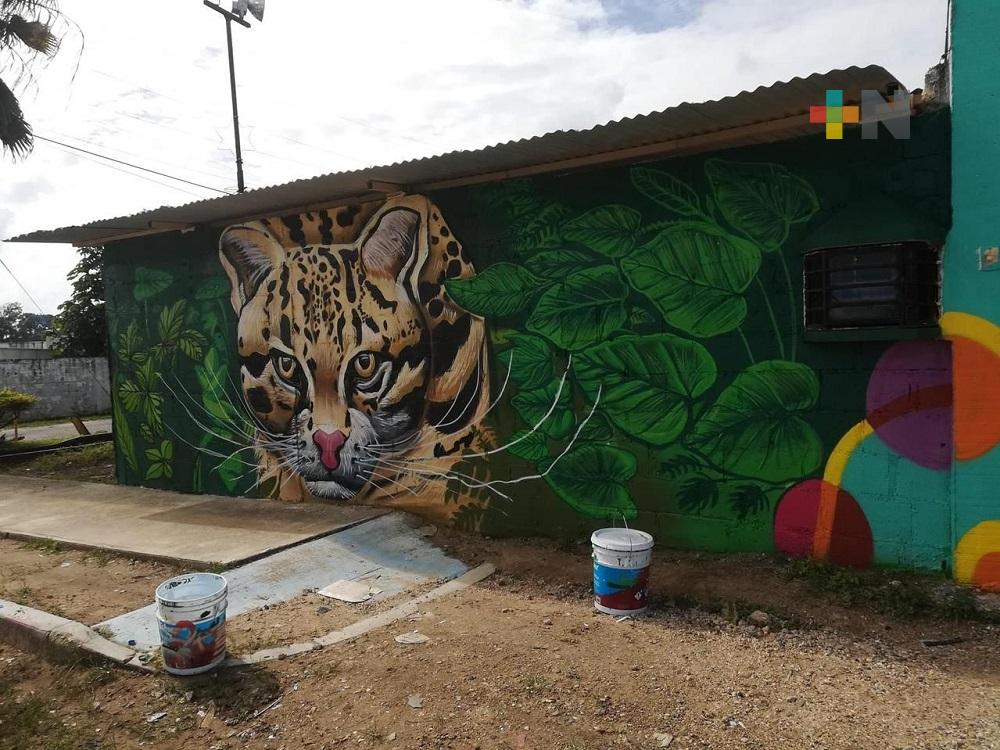 En el mural de Minatitlán, se plasmó flora y fauna de la región sur de Veracruz, así como un reconocimiento a la cultura, su gente y el color de la naturaleza de los municipios de la zona.