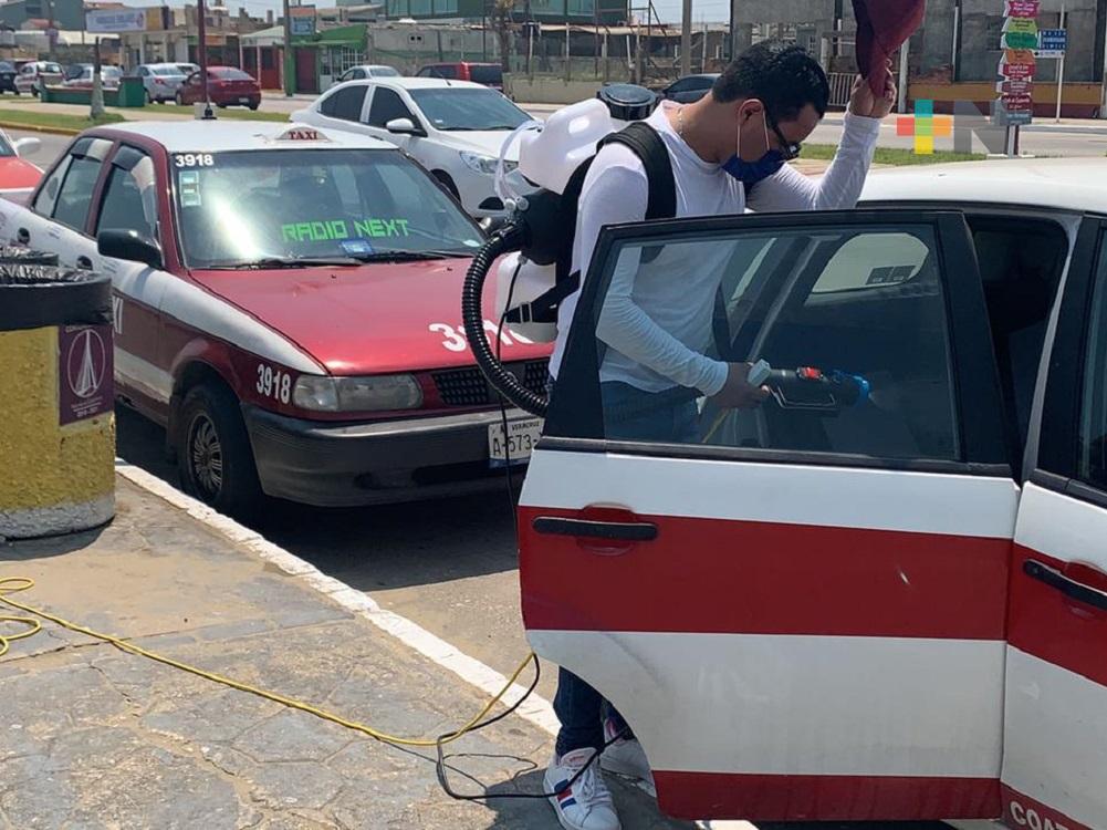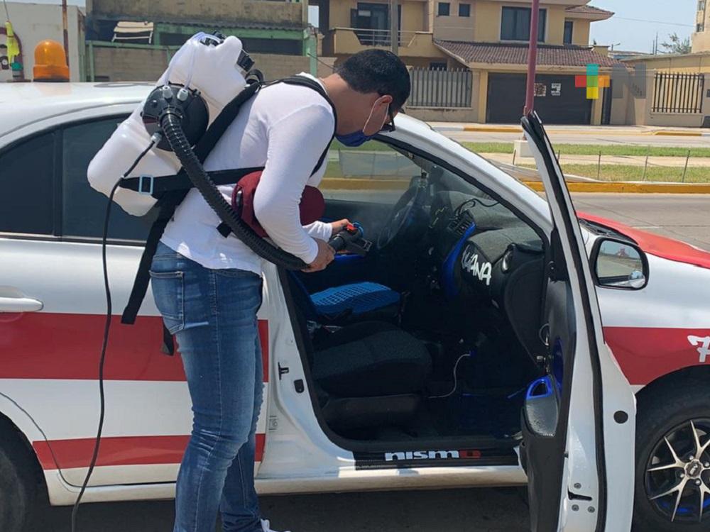 En Coatzacoalcos, Organización de Taxis Independientes realizó jornada de desinfección de unidades