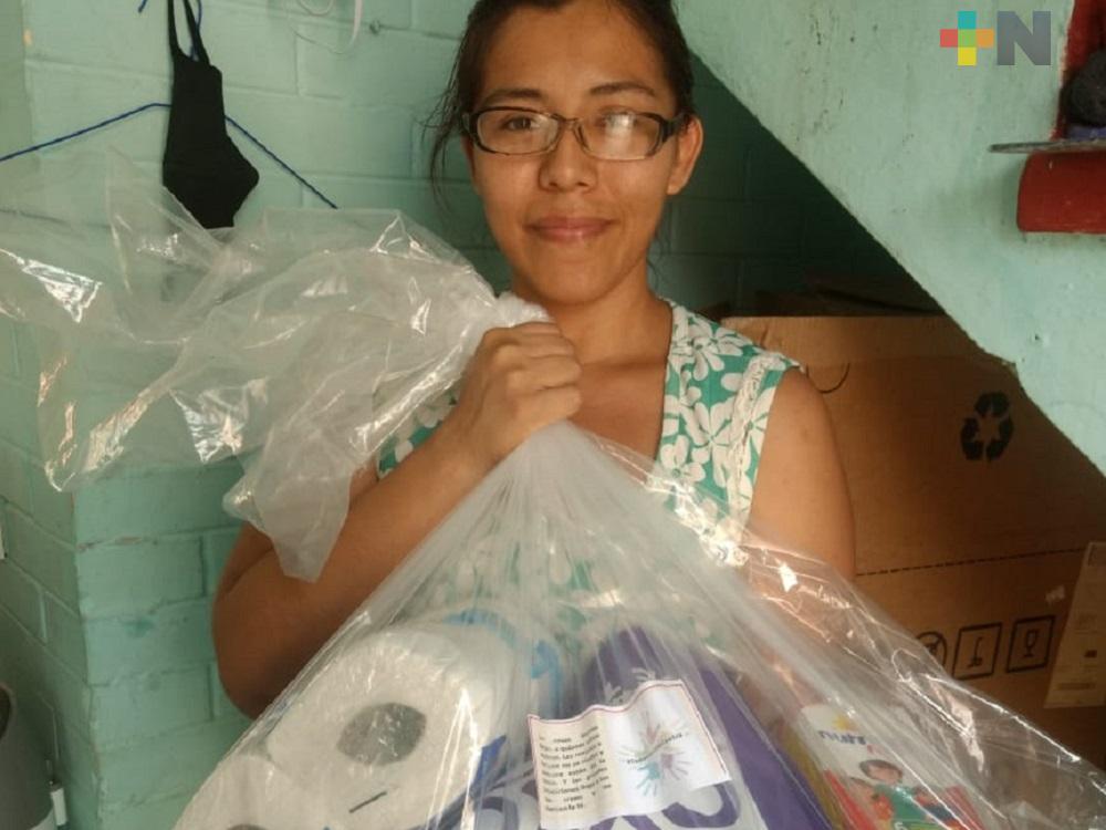 En Coatzacoalcos, representante de Teatro Urbano entrega despensas a su equipo de trabajo