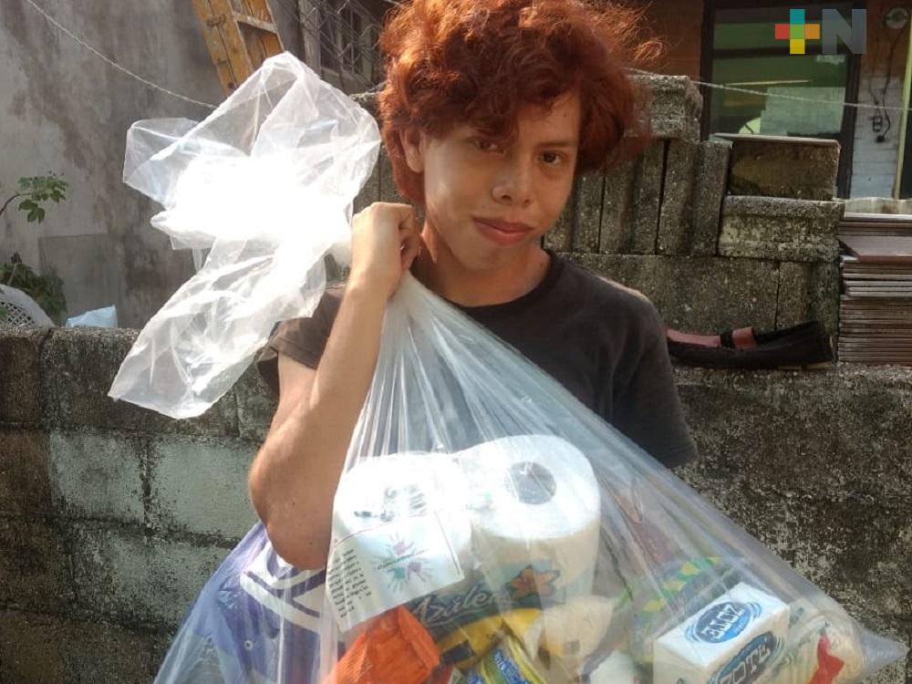 Coatzacoalcos, Ver.- Por el confinamiento, David Aguirre canceló sus presentaciones de Teatro Urbano en Coatzacoalcos, sin embargo, no quiso abandonar a su equipo de trabajo por lo que buscó la forma de apoyarlos con productos de la canasta básica que consiguió con empresarios y el ayuntamiento.