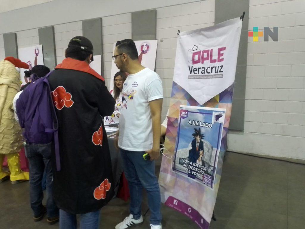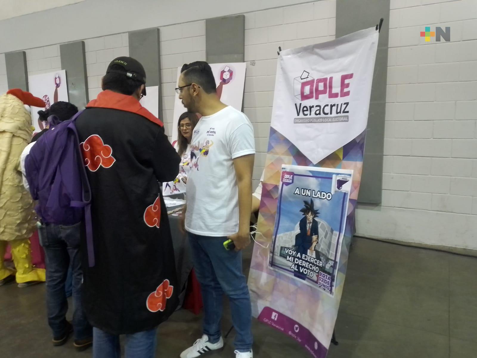 Boca del Río, Ver.- Con el fin de incentivar el voto de los jóvenes en la zona conurbada Veracruz-Boca del Río, el Organismo Público Local Electoral (OPLE) instaló una mesa en una convención de anime, manga y comics en el World Trade Center.