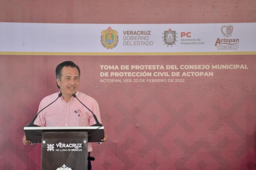 Actopan, Ver.- Con el inicio de una nueva etapa de coordinación entre el Gobierno del Estado y el Ayuntamiento de este municipio, el gobernador Cuitláhuac García Jiménez agradeció al pueblo su confianza en la Cuarta Transformación y manifestó que el respaldo será desde hoy en todos los ámbitos. Acompañado por la titular de la Secretaría de Protección Civil, Guadalupe Osorno Maldonado, y la alcaldesa María Esther López Callejas, tomó protesta al Consejo Municipal de PC como el ente de gestión integral del riesgo y primer respondiente ante las emergencias que tuvieran lugar, el cual mantendrá comunicación constante con el Sistema Estatal.