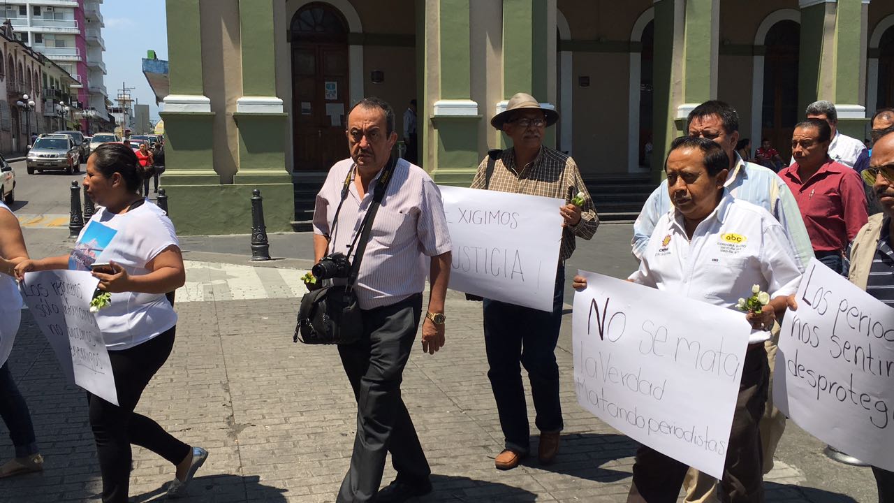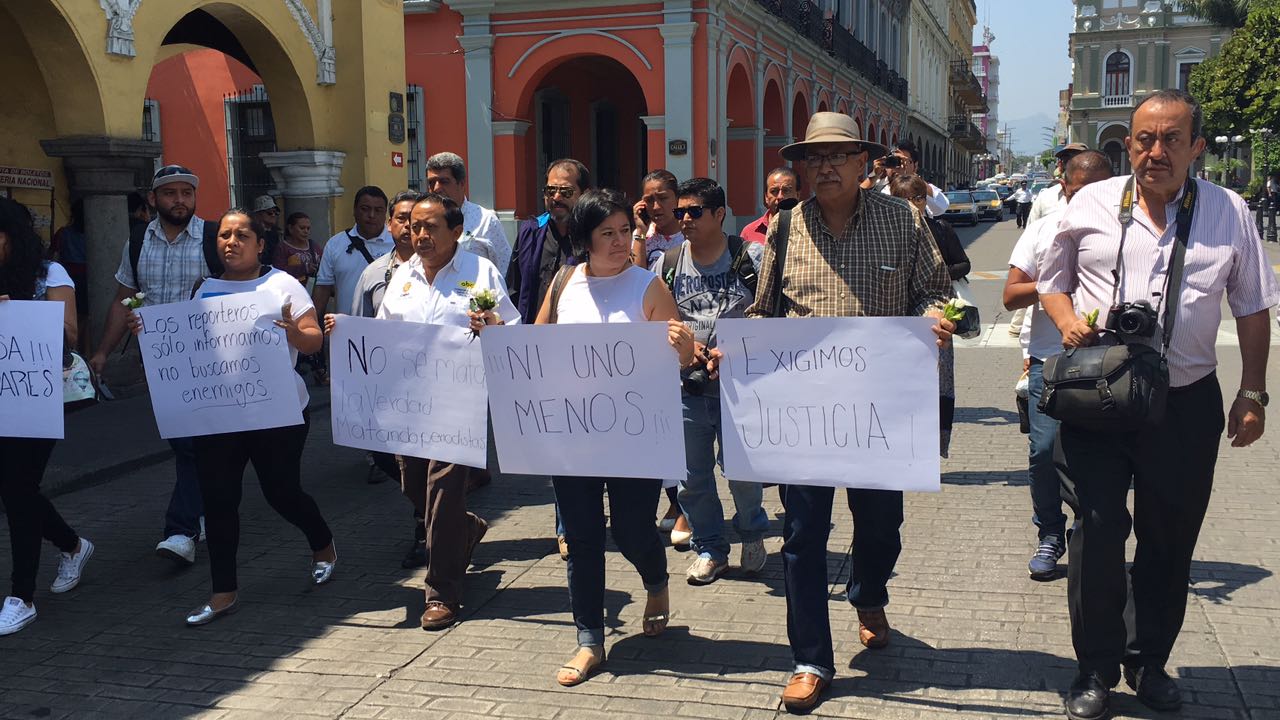 Córdoba, Ver., 20 de marzo de 2017.– Representantes de diversos medios de comunicación de la región de Córdoba marchan, en completo silencio, por las calles de la ciudad para exigir un alto a las agresiones contra comunicadores.