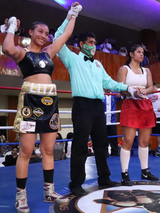 Veracruz, Ver.- En su debut en el boxeo profesional, la pugilista veracruzana, Litzy «La Bomba» Adilene, venció por knockout a su adversaria de Zacatecas Jareth ‘Chocolatita’ Rousell.