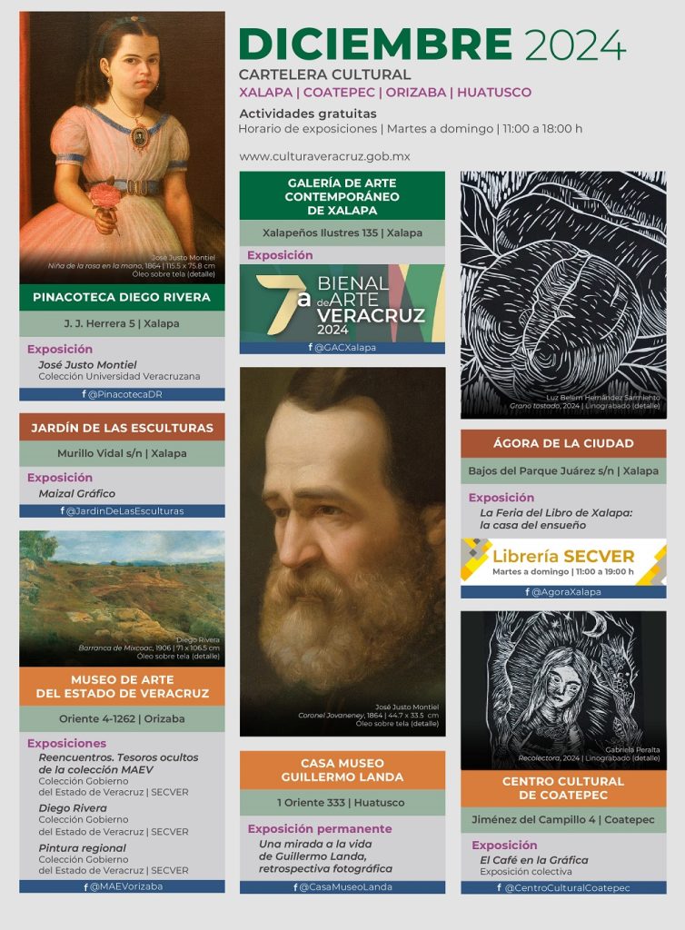 Acércate a los recintos de la SECVER durante el mes de diciembre. La entrada a todas las actividades es gratuita. Conoce la programación completa de la Secretaría de Cultura de Veracruz en la página web oficial www.culturaveracruz.gob.mx, así como en las redes sociales de la @SECVERoficial.