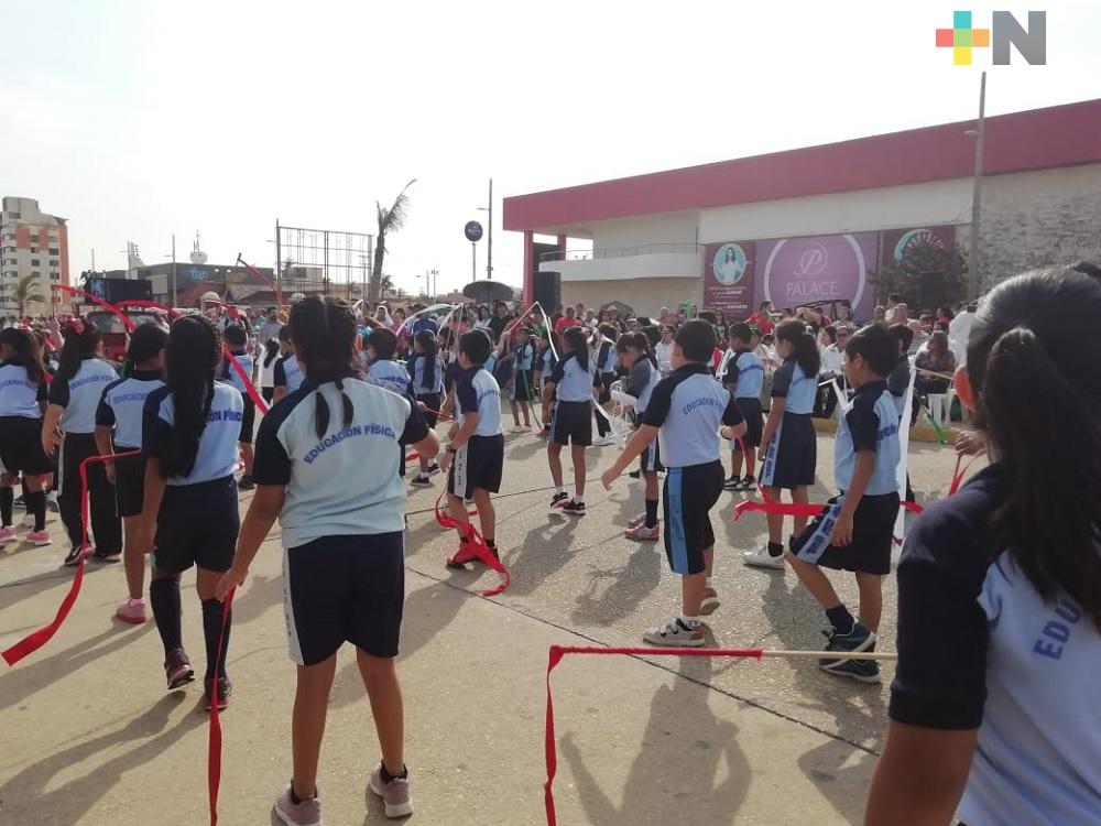 Más de 8 mil estudiantes participaron en esta conmemoración, realizando tablas rítmicas y colorido en sus trajes.