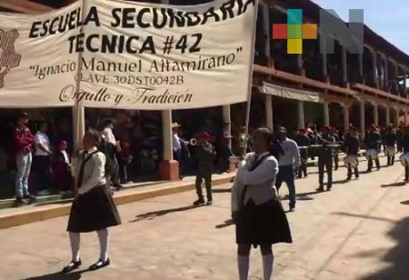 Preescolar, primarias Jesús Reyes Heroles, Ignacio Zaragoza, Wilfrido García, telesecundaria Leyes de Reforma, Colegio de Estudios científicos y Tecnológicos de Veracruz, telebachillerato Huayacocotla, Instituto Tecnológico Superior de Chicontepec, Unidad Académica Huayacocotla, entre otros planteles educativos, desfilaron por más de tres horas en diferentes calles.