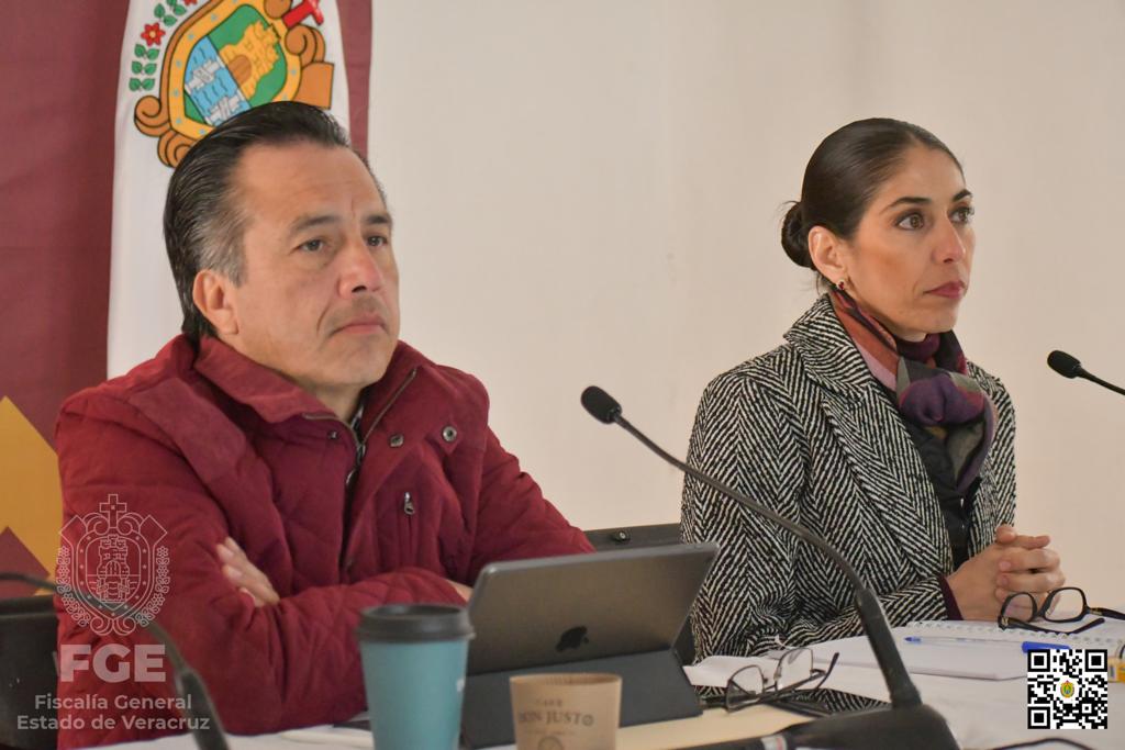 Perote, Ver.- En las instalaciones de la Fortaleza de San Carlos, la Fiscal General del Estado, Verónica Hernández Giadáns, participó en la Mesa de Coordinación para la Construcción de la Paz encabezada por el Gobernador Cuitláhuac García Jiménez, donde informó que la Unidad Especializada en Combate al Secuestro logró sentencia condenatoria de 51 años de prisión en contra de Brythanh Alexis “N” por el delito de secuestro agravado en perjuicio de una víctima identificada con las iniciales L.F.C., por hechos acontecidos el pasado 31 de marzo del año 2021 en la colonia Jardín, perteneciente al municipio de Papantla, donde privó de la libertad a la víctima y posteriormente exigió dinero a cambio de su liberación, hechos estipulados dentro del juicio oral J-04/2022.