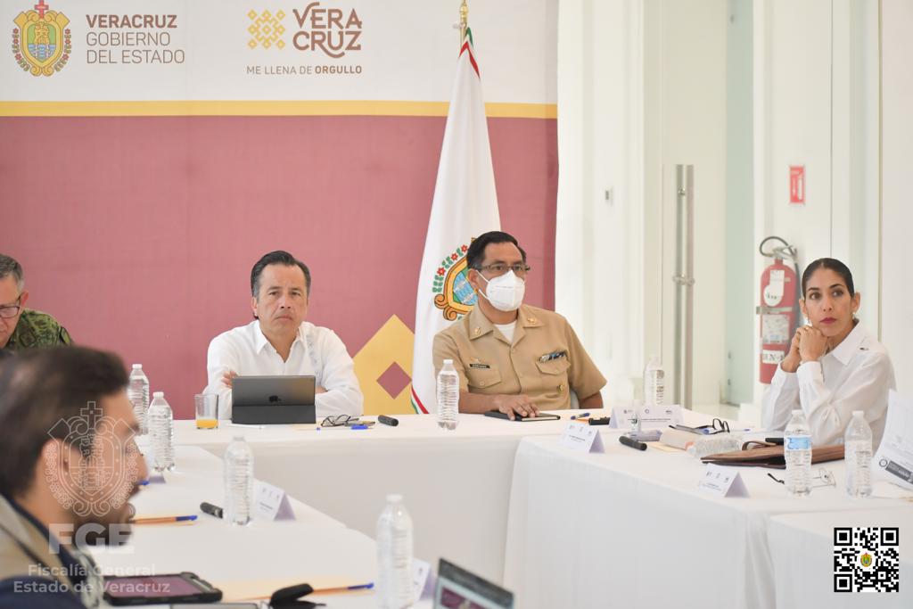 En instalaciones de la Primera Región Naval, en la ciudad y puerto de Veracruz, la Fiscal General del Estado, Verónica Hernández Giadáns, participó en la Mesa de Coordinación para la Construcción de la Paz, donde expuso que en las pasadas 24 horas se cumplimentaron 13 mandamientos judiciales, se efectuaron 6 detenciones en flagrancia y se localizó a 10 personas reportadas como desaparecidas.