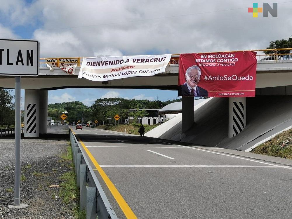 Moloacán, Ver.- Diversas lonas recibiendo al presidente de la República, Andrés Manuel López Obrador, han sido colocados al sur de Veracruz, a unos horas de su arribo y recorrido que sostendrá en la región.
