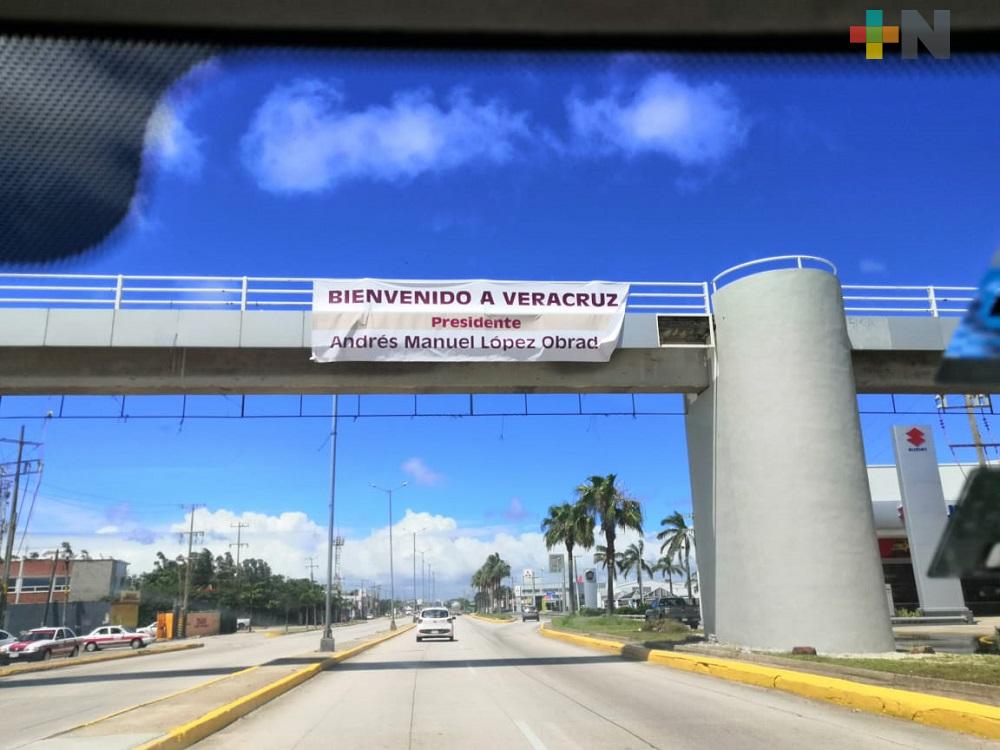 En el sur de Veracruz, colocan diversas lonas para recibir a presidente López Obrador