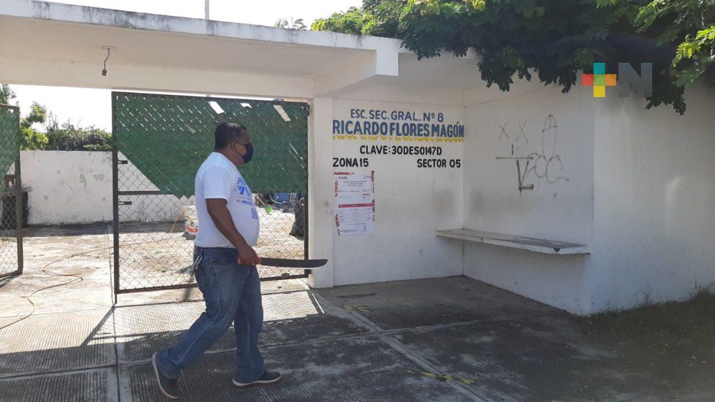 En escuela secundaria de Veracruz inició la limpieza para el regreso a clases presenciales