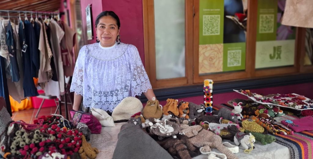 Este fin de semana, Adelaida, artesana y diseñadora originaria de Zongolica, compartió sus saberes durante el festival de Arte Textil con Conciencia Ambiental que se realizó este fin de semana en el jardín de Las Esculturas de Xalapa.