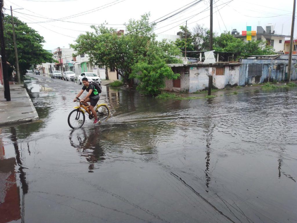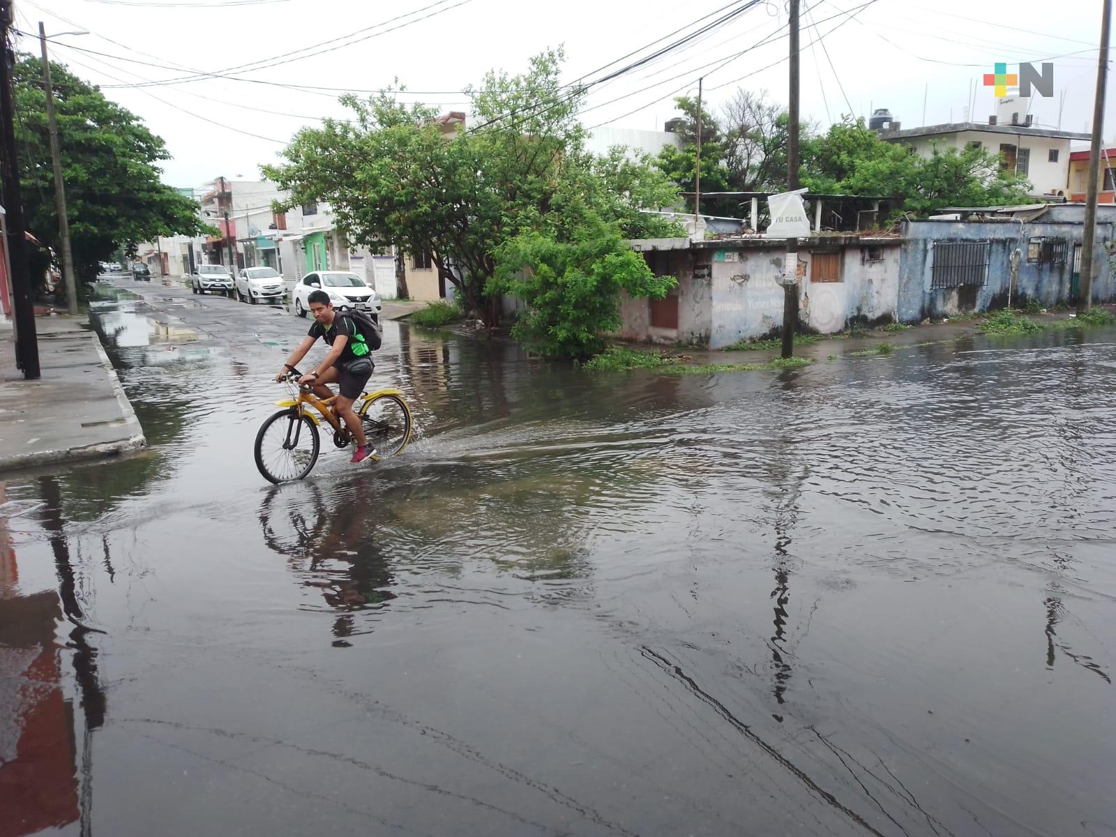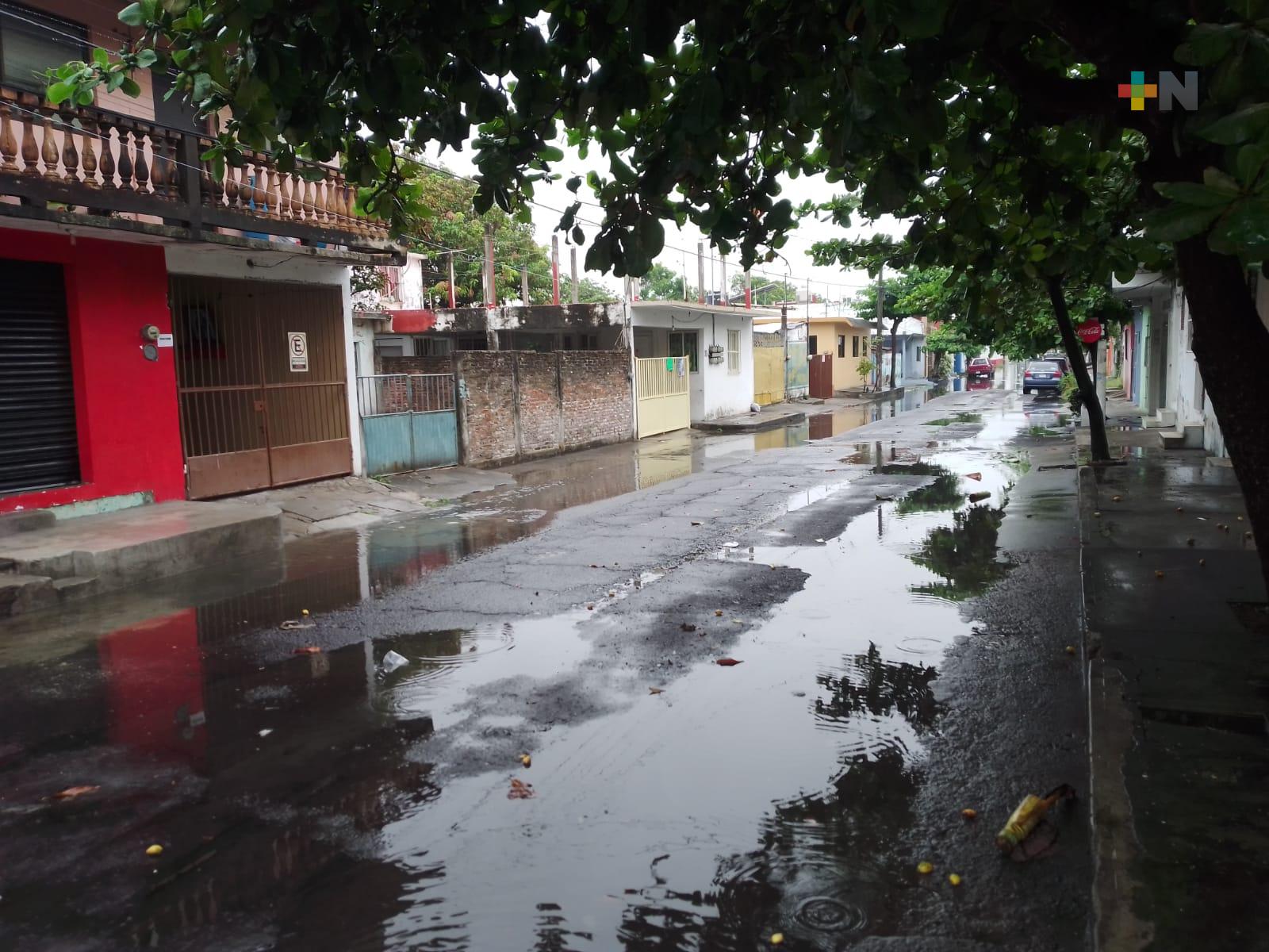 Boca del Río, Ver.- Ante la lluvia que se registró desde temprana hora de este lunes, vecinos de la colonia Nueva Era en Boca del Río, han tenido que sortear los encharcamientos importantes que se han formado.