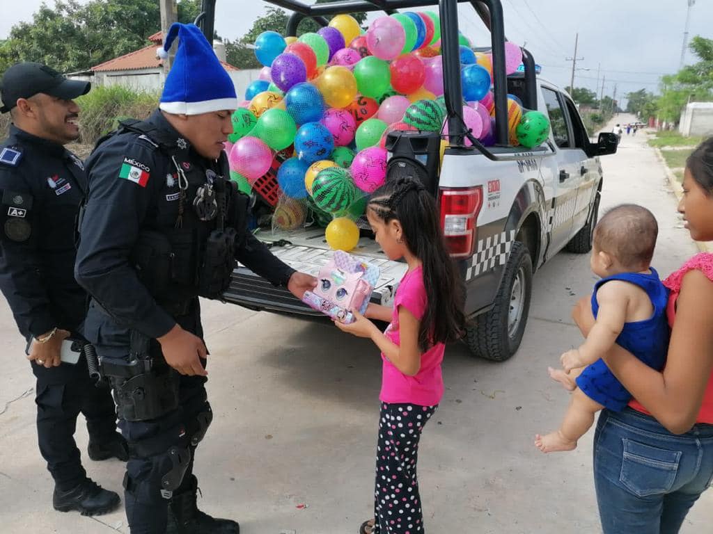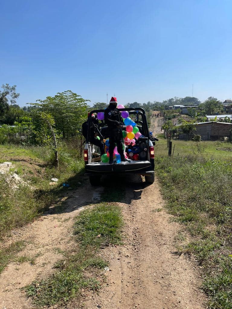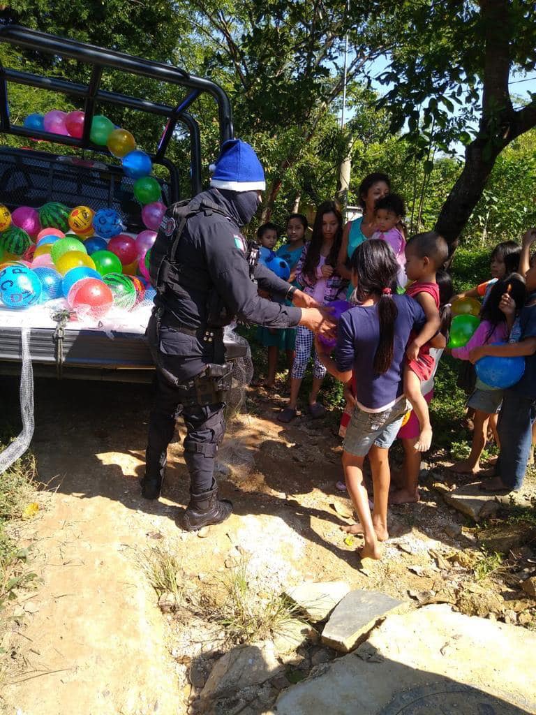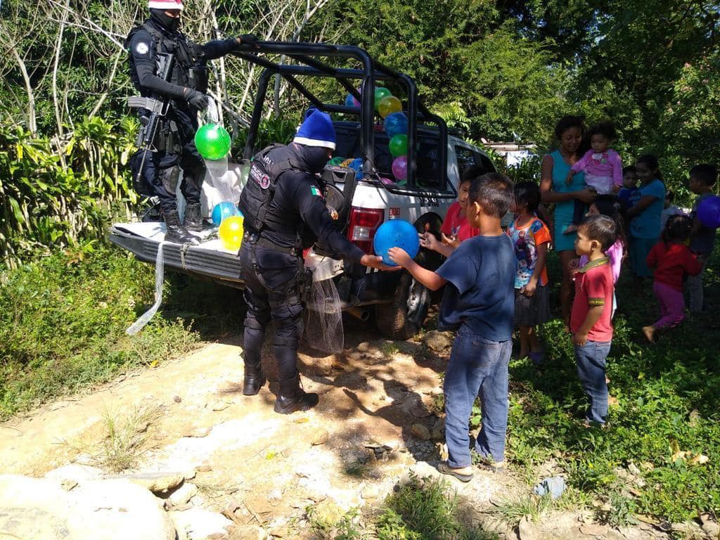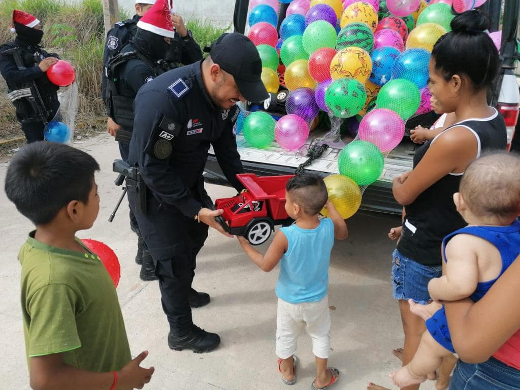 «Con el propósito de preservar las tradiciones y celebrar el espíritu de la navidad, personal de la Secretaría de Seguridad Pública (SSP), con base en el municipio de Las Choapas, repartió juguetes a niñas y niños de esa ciudad, además de fomentar la convivencia entre autoridades y ciudadanía, fortaleciendo así los lazos sociales», indica la publicación en Facebook.