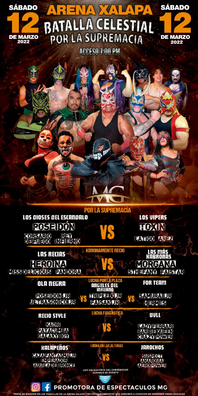 Xalapa, Ver.- Promotora de Espectáculos MG presentó el cartel de la función denominada «Batalla Celestial», la cual se llevará a cabo el 12 de marzo en la Arena Xalapa, xalapeños y jarochos volverán a verse las caras como en los viejos tiempos y crear nuevas rivalidades.