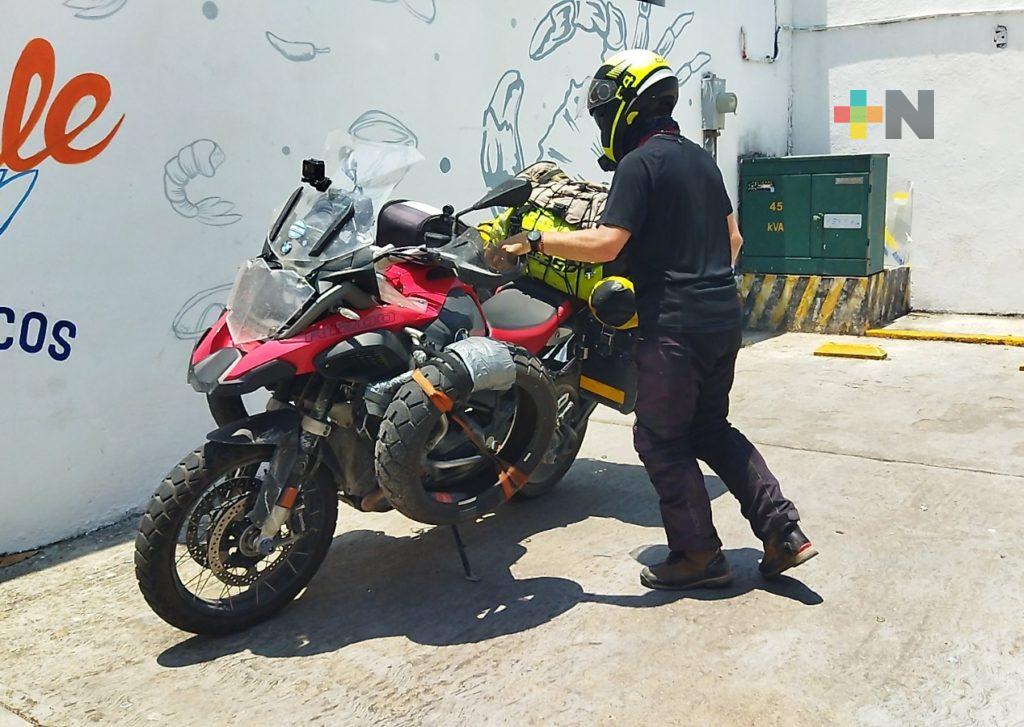Coatzacoalcos, Ver.- Desde hace casi 50 días, el argentino Diego Elías, inició un viaje en busca de llegar en una motocicleta hasta Alaska, entre su trayecto pasó por Coatzacoalcos.