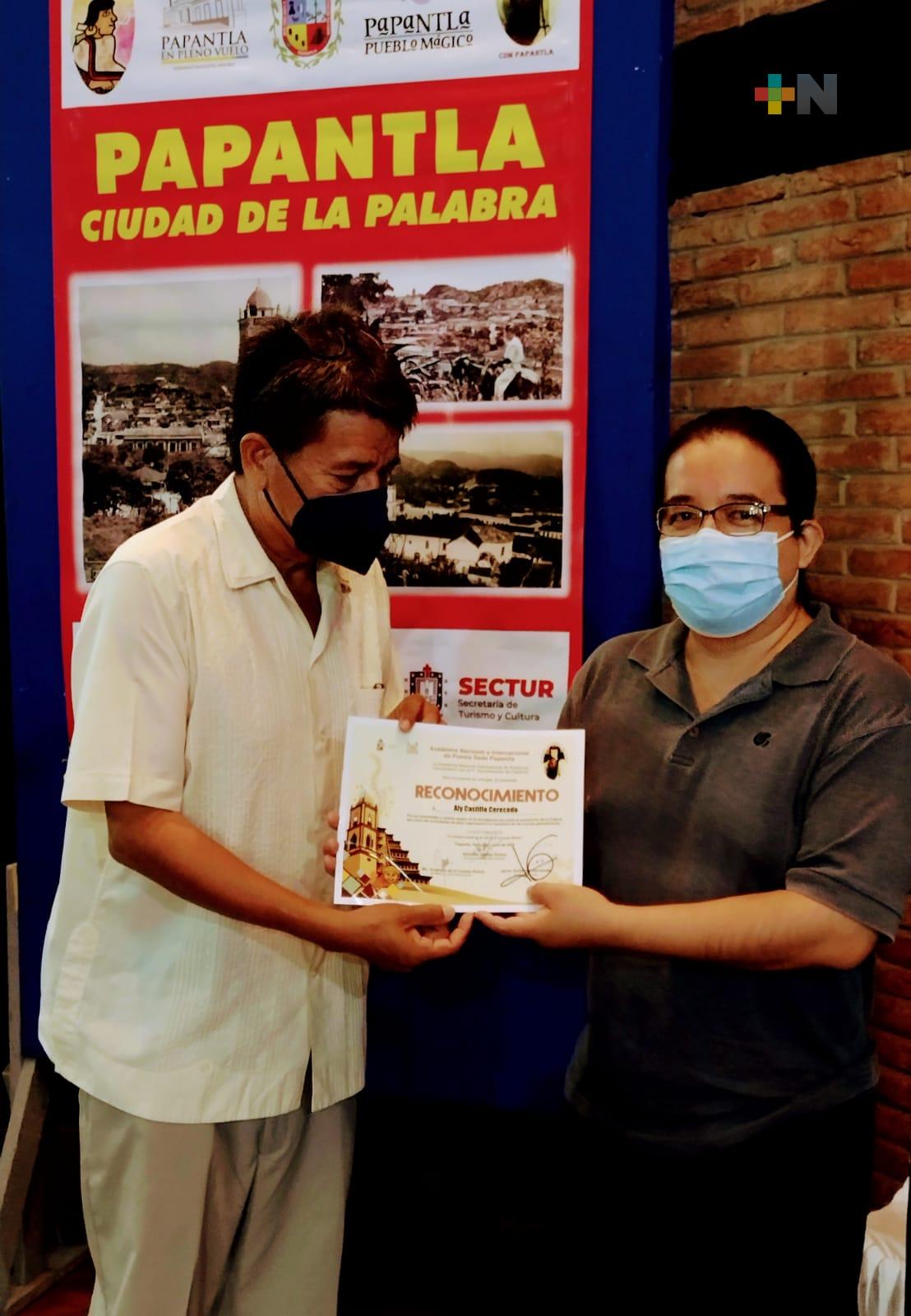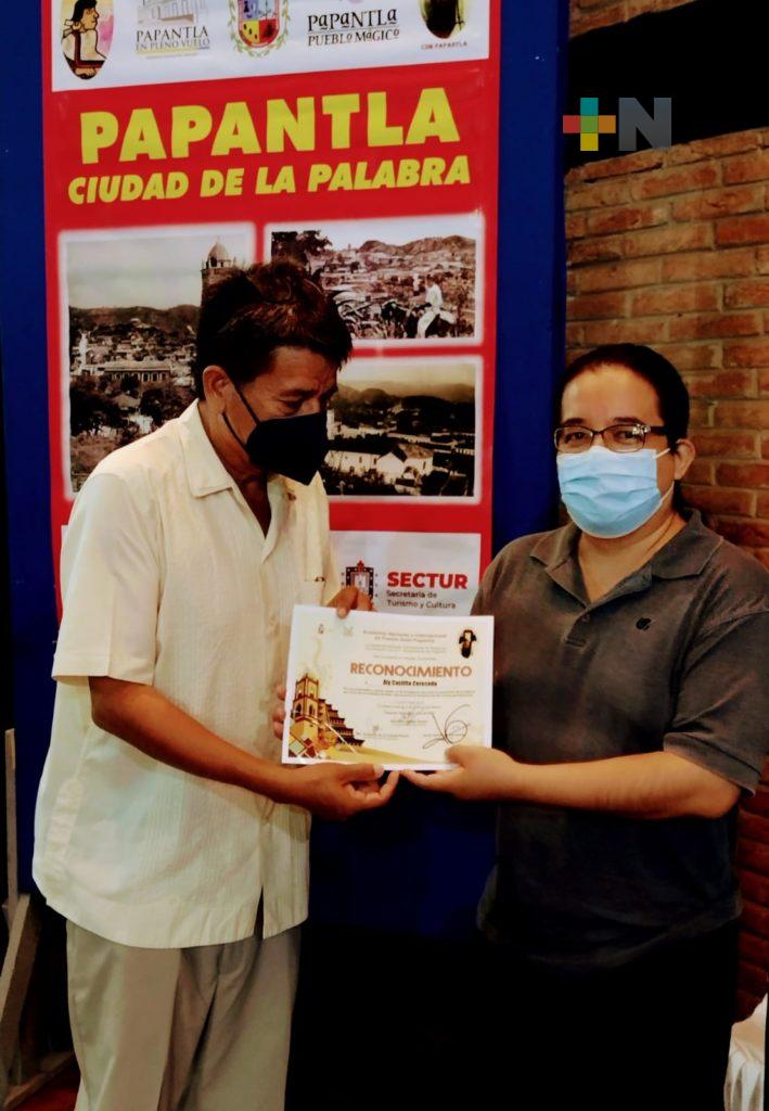 Entre las personas que recibieron reconocimientos se encuentran, Lázaro Espinoza Roldán, Rosario de la Garza Campos y el director de está casa, dedicada a resguardar la herencia cultural en Papantla.