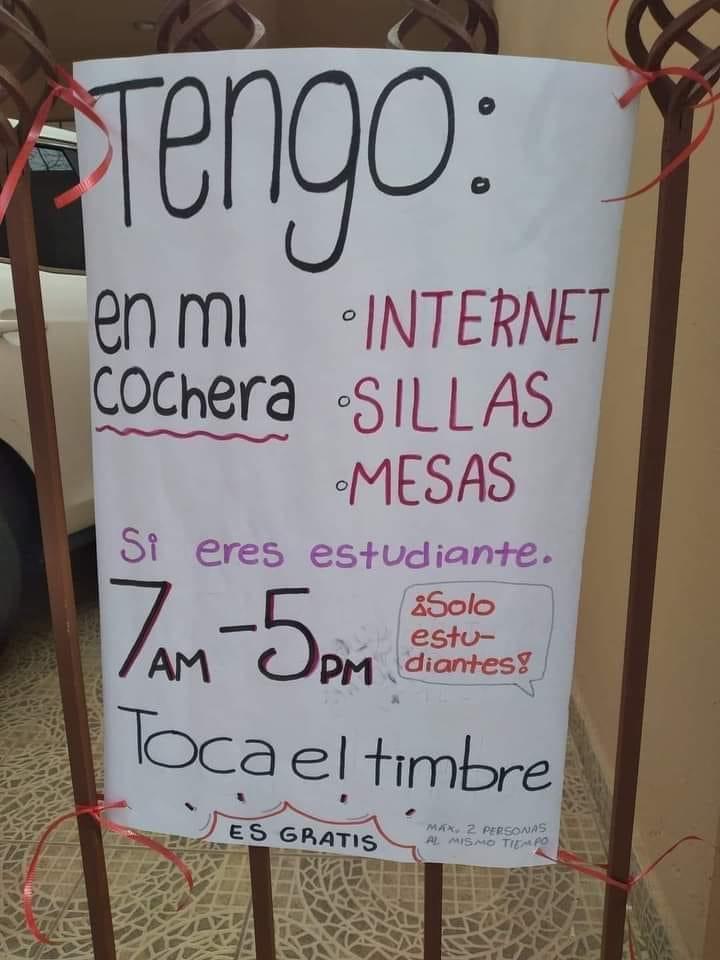 Nanchital, Ver.- En Nanchital, la señora Rubicelia Ramírez Posada decidió habilitar la cochera de su casa con el fin de recibir a los estudiantes que no cuenten con herramientas para tomar sus clases a partir del próximo 24 de agosto.