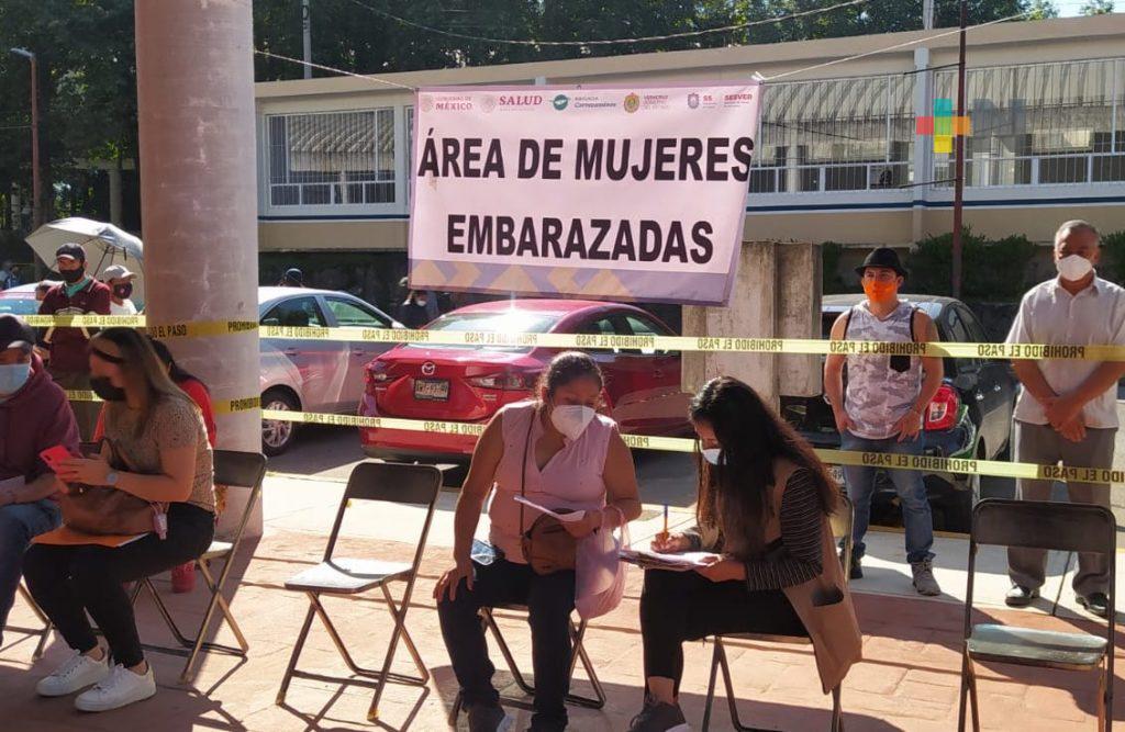 Banderilla, Ver.- En completo orden se lleva a cabo la vacunación a personas de 50 a 59 años y mujeres embarazadas, a la aplicación de la primera dosis de Sinovac en el macrocentro de Banderilla también acuden personas de los municipios de Acajete y Rafael Lucio.