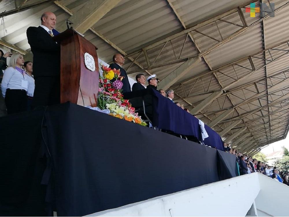 En representación del director general del Tecnológico de México, acudió el secretario de Extensión y Vinculación, Guillermo Hernández Duque, quien expresó que los pilares del tecnológico son la formación integral de los estudiantes y el desarrollo del país por ello se fomenta el amor a la patria y el respeto a los símbolos, para generar una cultura de la paz.