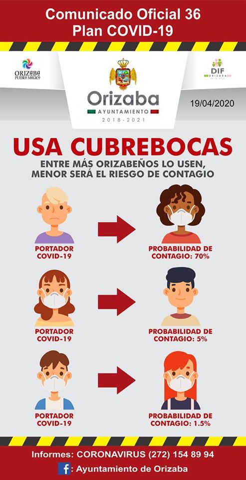 Orizaba, Ver.- Por disposición de Transporte Público del Estado en coordinación con Tránsito municipal de Orizaba, a partir de sábado 18 de abril de 2020, se le exigirá a todo usuario del transporte urbano y suburbano en todas las líneas, el uso obligatorio de cubrebocas.