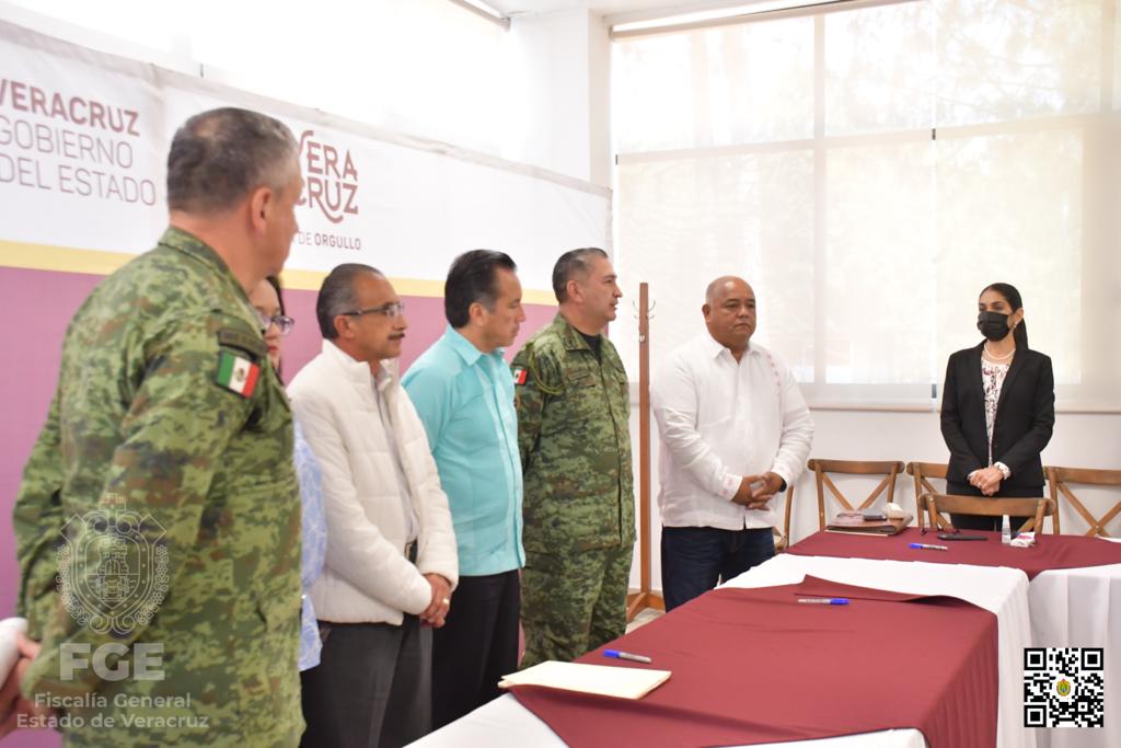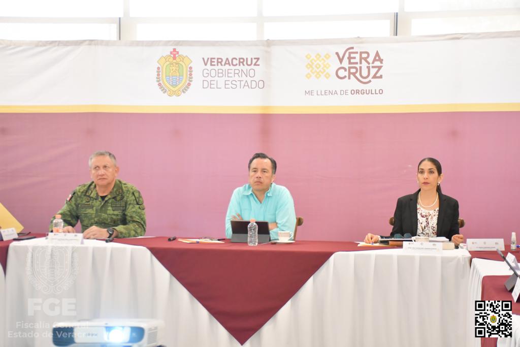 Perote, Ver.- En las instalaciones del 111/o Batallón de Infantería en el municipio de Perote, la Fiscal General del Estado, Verónica Hernández Giadáns, participó en la Mesa de Coordinación para la Construcción de la Paz, donde expuso que en las pasadas 24 horas se cumplimentaron 16 mandamientos judiciales, se efectuaron 5 detenciones en flagrancia y se localizó a 5 personas reportadas como desaparecidas.