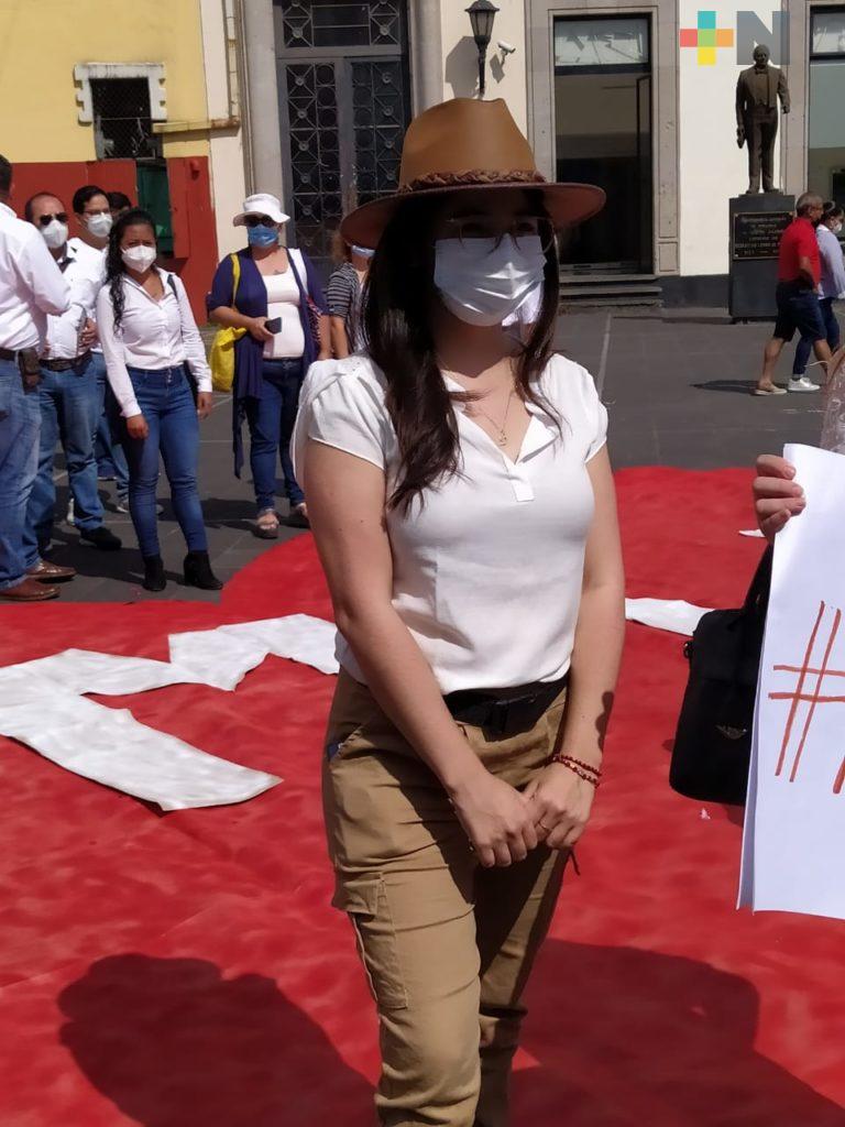 Xalapa, Ver.- La diputada federal Dorheny García Cayetano y simpatizantes de Morena, en plaza Lerdo realizaron una jornada en apoyo al presidente Andrés Manuel López Obrador, donde colocaron un corazón con las iniciales de AMLO, esto ante las campañas de odio que intentan sembrar los conservadores.