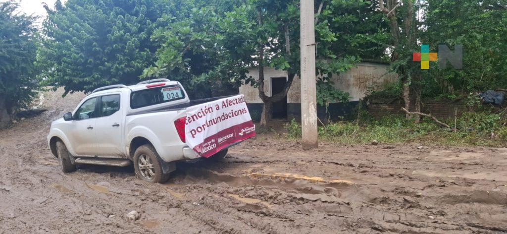 Los Servidores de la Nación de la Secretaría del Bienestar recorren casa por casa en las colonias más dañadas durante la contingencia, que son las ubicadas al margen del río Cazones en el caso de Poza Rica.