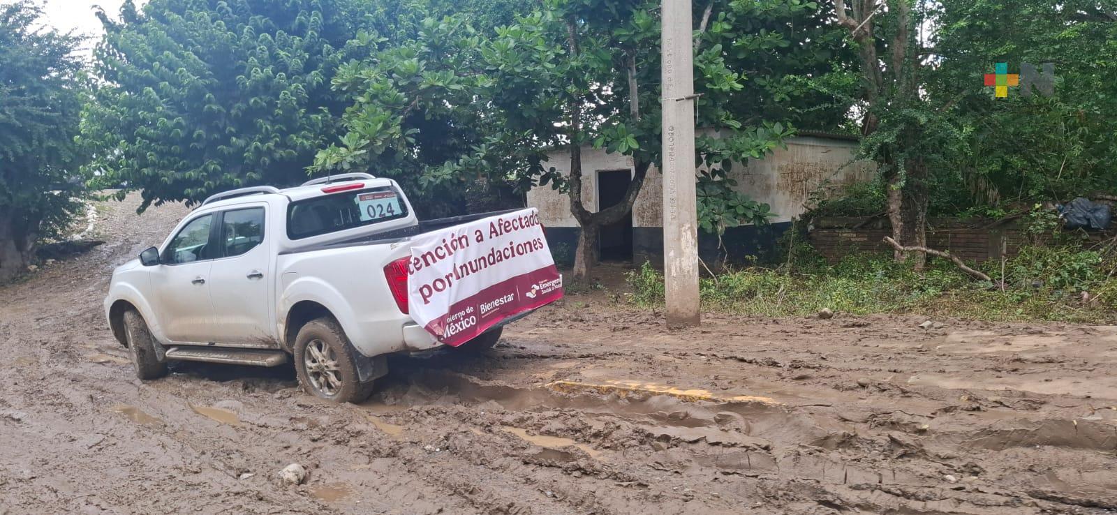 Los Servidores de la Nación de la Secretaría del Bienestar recorren casa por casa en las colonias más dañadas durante la contingencia, que son las ubicadas al margen del río Cazones en el caso de Poza Rica.