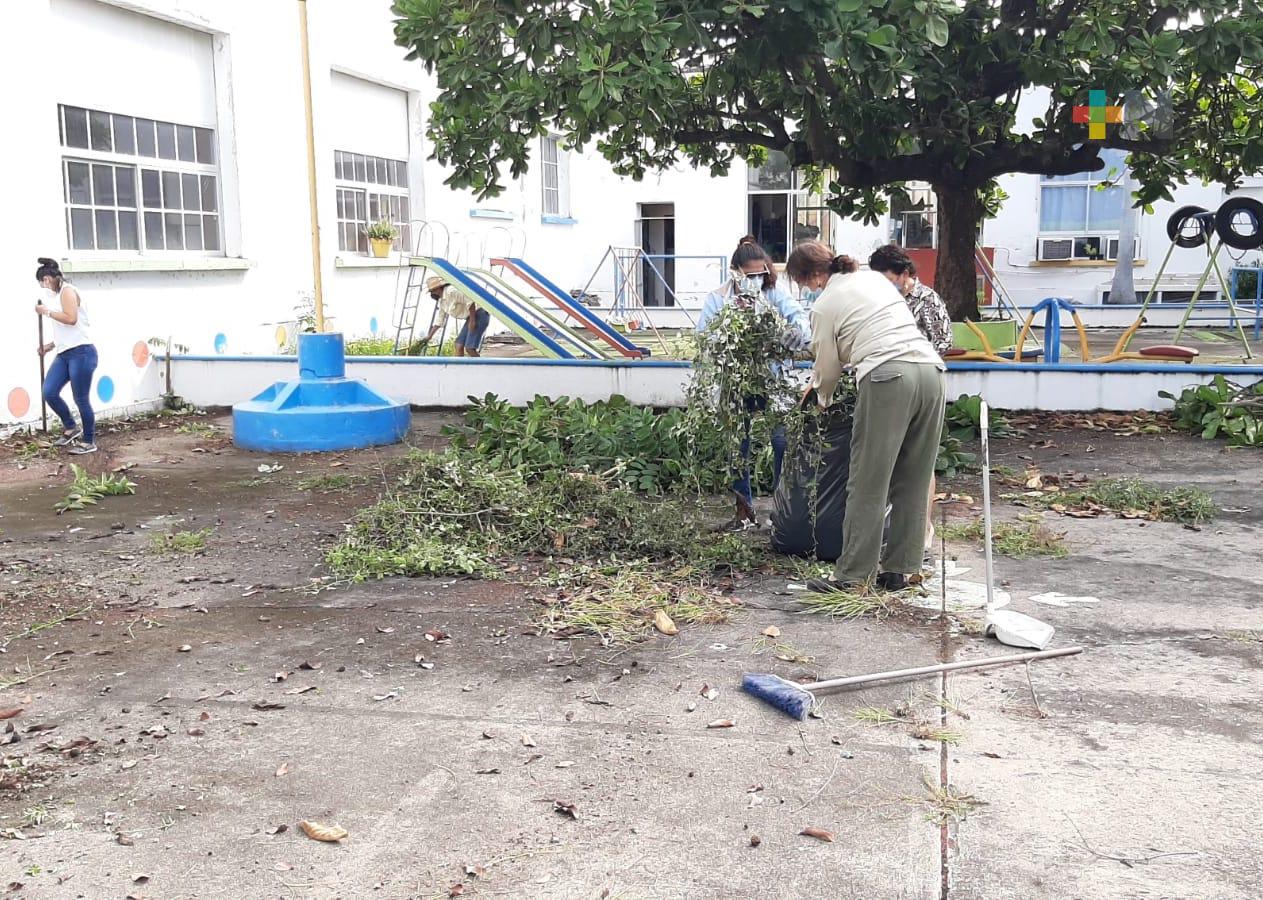 En puerto de Veracruz, continúa campaña «Tequio por mi Escuela»