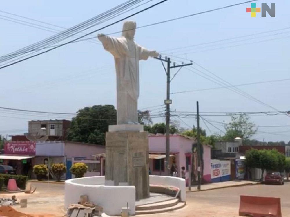 Soconusco, Ver.- En medio de la pandemia de coronavirus, el gobierno municipal de Soconusco instaló una réplica del Cristo Redentor de Río de Janeiro, Brasil.