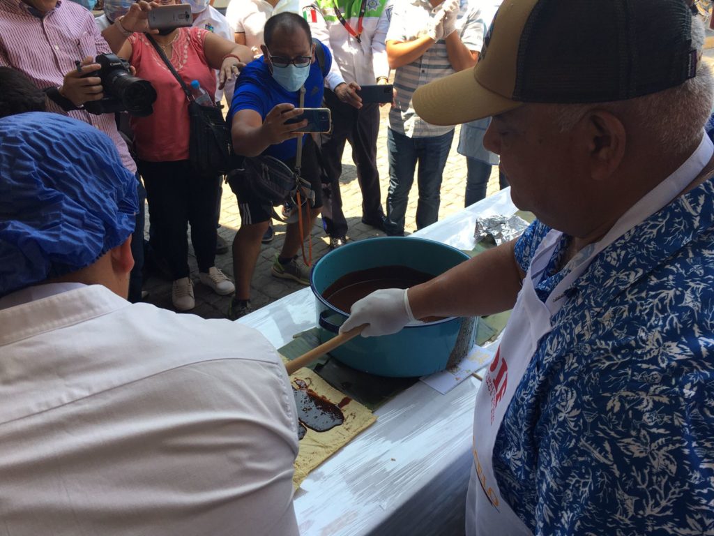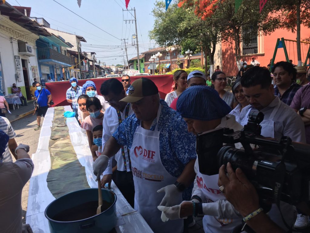 Teocelo, Ver.- Este domingo, el secretario de Gobierno Eric Cisneros Burgos encabezó la elaboración de la «Enmolada más grande del Mundo», con un tamaño aproximado de entre 100 a 120 metros de largo; esto como parte de las actividades del Primer Festival de la Miel y el Mole 2022 en este municipio.