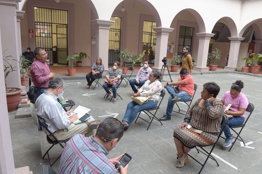 Durante una reunión de trabajo con dirigentes de comerciantes, se les explicó que con el fin de inhibir el contagio, se requiere evitar la aglomeración de personas, así como la instalación de puestos donde se comercialicen ropa usada, juguetes o artículos no esenciales.