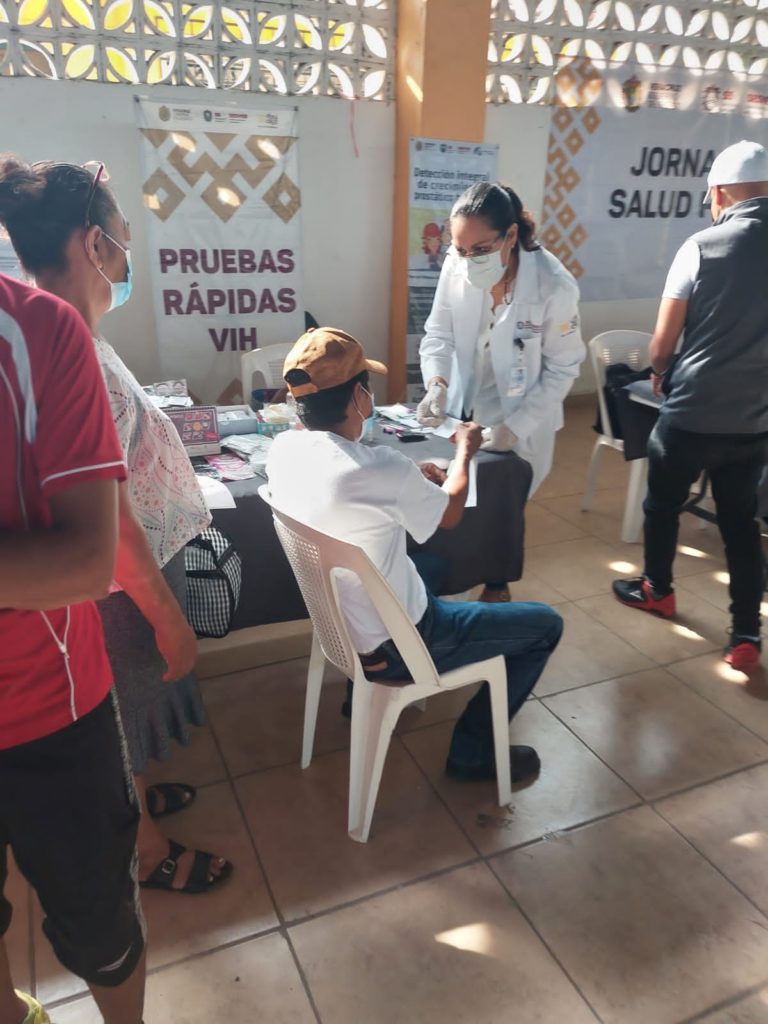 Este domingo en el municipio de Tlacojalpan, las brigadas itinerantes de Salud atendieron a más de 300 personas que acudieron desde temprano a realizarse pruebas rápidas, atención dental y de laboratorio.
