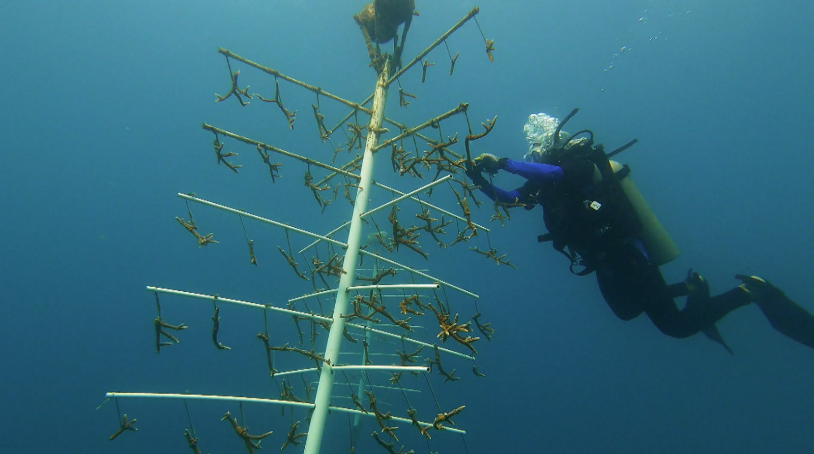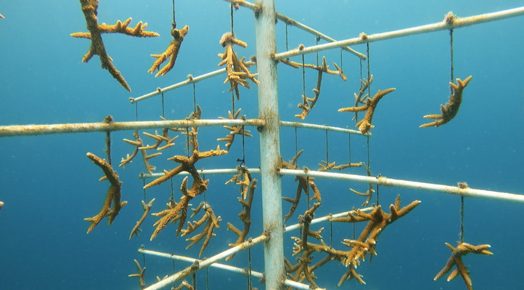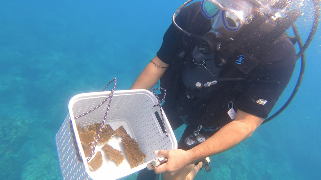 ”Lo que hacemos con estas colonias es poder tomar fragmentos que hayan sido desprendidos de manera natural, ya sea por oleaje, por acción de fricción de otros materiales que estén en el fondo marino y tomarlos para evitar que estos mueran y poderlos colocar en viveros, los cuales nos ayudan a estabilizarlos para posteriormente poderlos insertar en las zonas del arrecife, donde antes había corales y por cuestiones climáticas o por el paso del tiempo ya no los hay”.