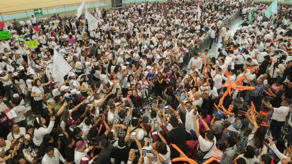 Durante el cierre de recorridos, quienes se dieron cita en el Velódromo de la Ciudad de Xalapa, Veracruz pudieron presenciar el cierre de los recorridos de Claudia Sheinbaum en un verdadero ambiente de fiesta con espectáculos de música en vivo con el talento de agrupaciones de regional mexicano, así como del artista Byron, oriundo de Veracruz quien deleito a los asistente con la canción «Obviamente es Claudia’’.
