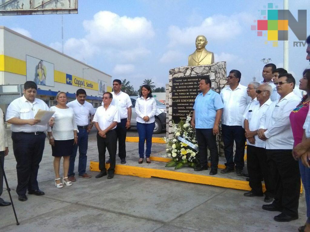 Con la participación de autoridades municipales, instituciones educativas y logias masónicas de Tierra Blanca, se realizó un homenaje cívico, así como también la colocación de ofrendas florales en el busto colocado en el parque central que lleva su nombre y en el monumento que se encuentra a la entrada de la ciudad.