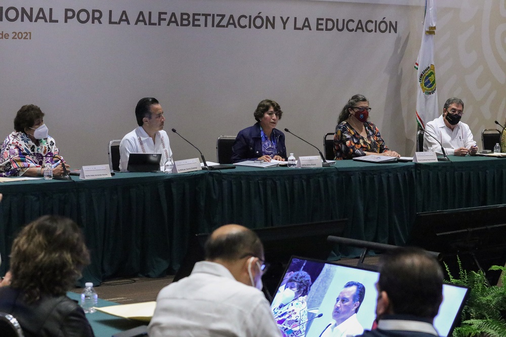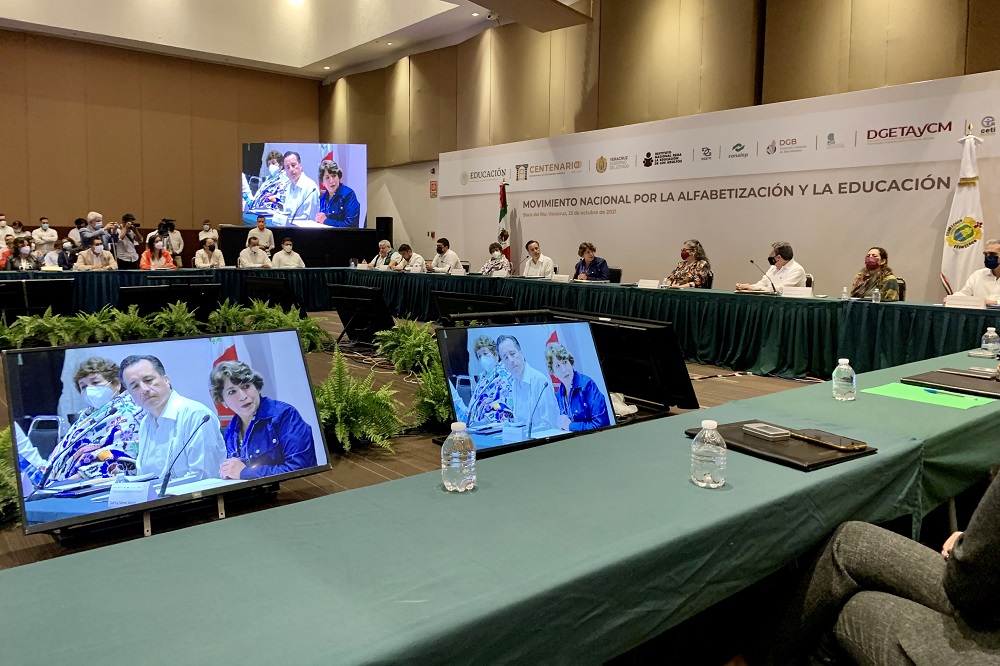 Boca del Río, Ver.- La secretaria de Educación Pública, Delfina Gómez Álvarez, encabezó la Reunión de Organización del Movimiento Nacional por la Alfabetización y la Educación, en el que participan el Instituto Nacional para la Educación de los Adultos (INEA), las y los directores estatales del organismo y las subsecretarías de Educación Básica, Media Superior y Superior.