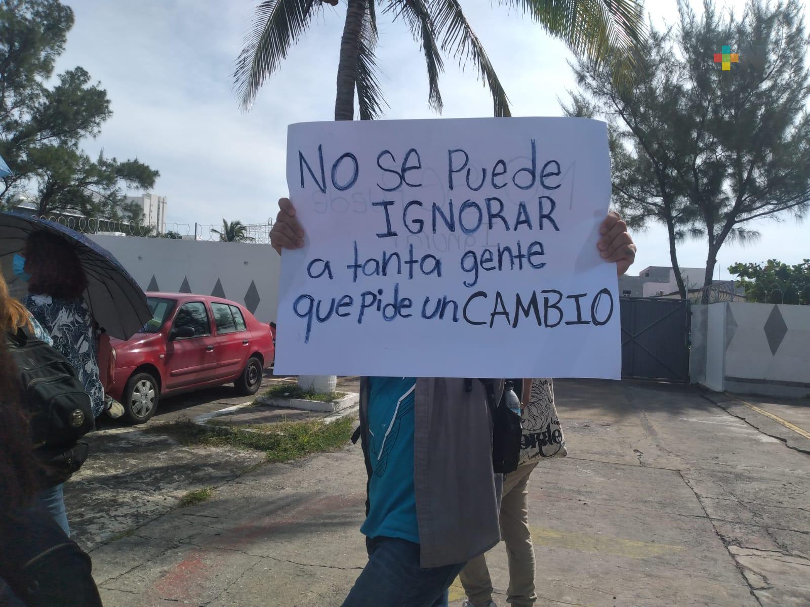 Con el apoyo de pancartas, las y los universitarios exigieron a las autoridades educativas de la UV se castigue al alumno que fue señalado como presunto acosador en un “tendedero”, además de que se garantice la seguridad y cese todo tipo de violencia.