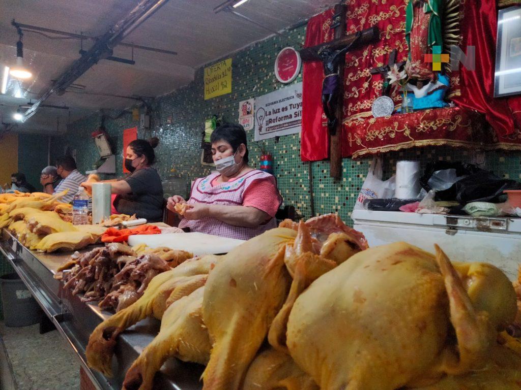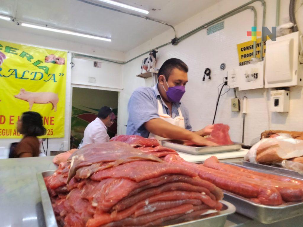 Al interior del mercado Jáuregui, los tablajeros reportan la disminución de hasta un cuarenta por ciento durante las últimas semanas; además de aumentos constantes de sus proveedores, lo que dificulta que este producto llegue a la mesa de las familias.