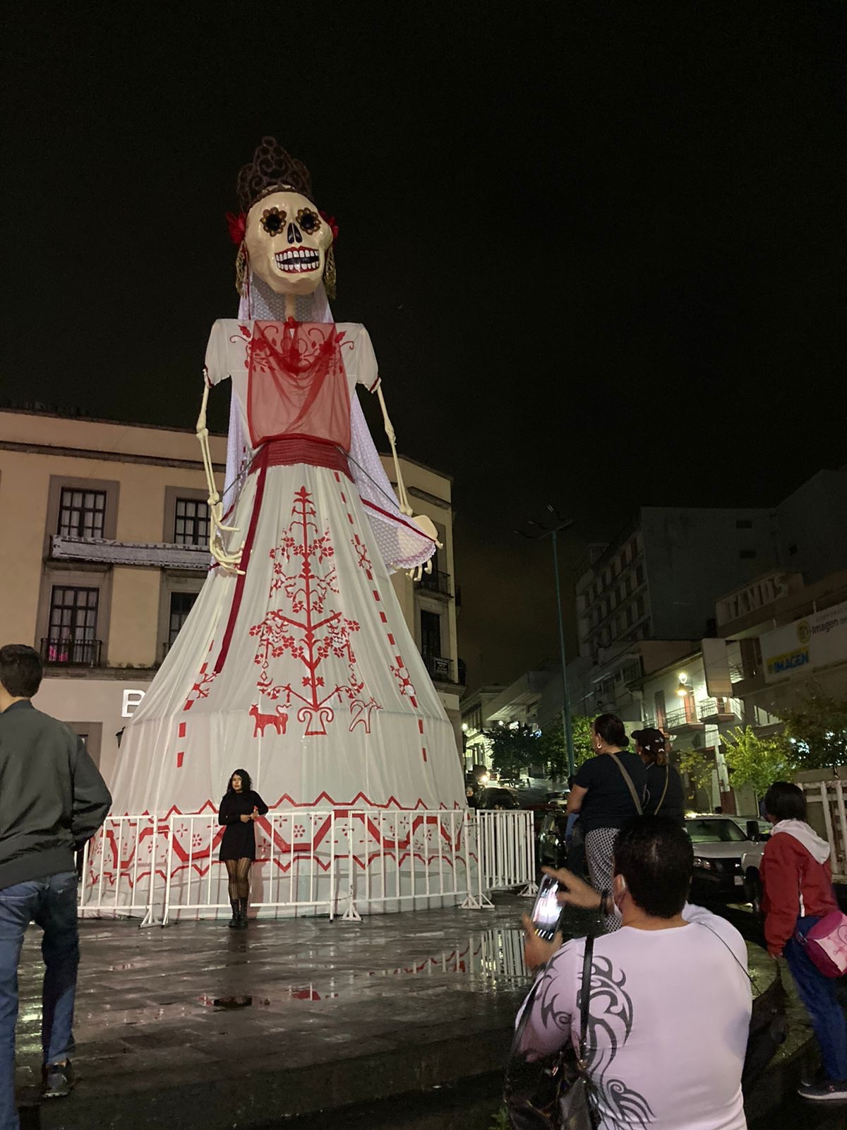 “Desde esta noche, así luce la monumental catrina que instalamos en la plaza Lerdo de Xalapa.