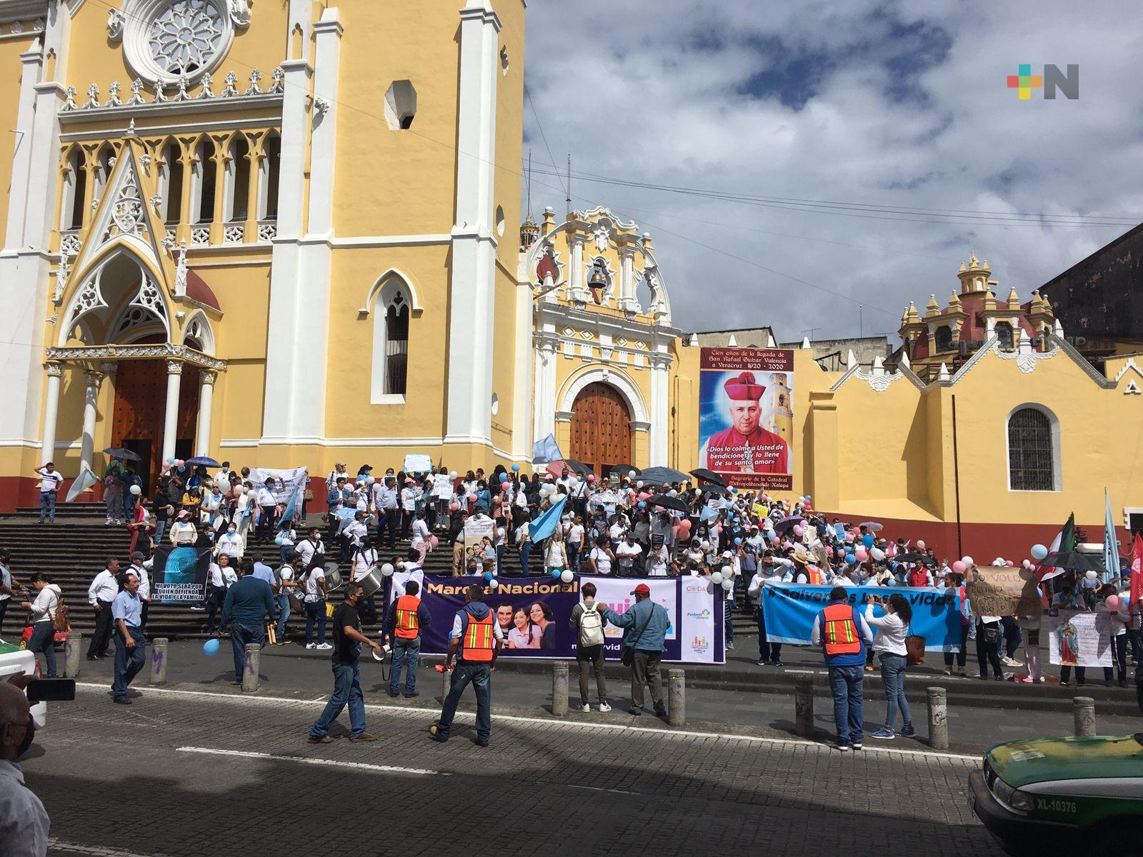 La marcha a favor de la mujer y de la vida fue convocado por la Arquidiócesis de Xalapa y el Frente Nacional por la Familia y se replicó en 30 estados del país.