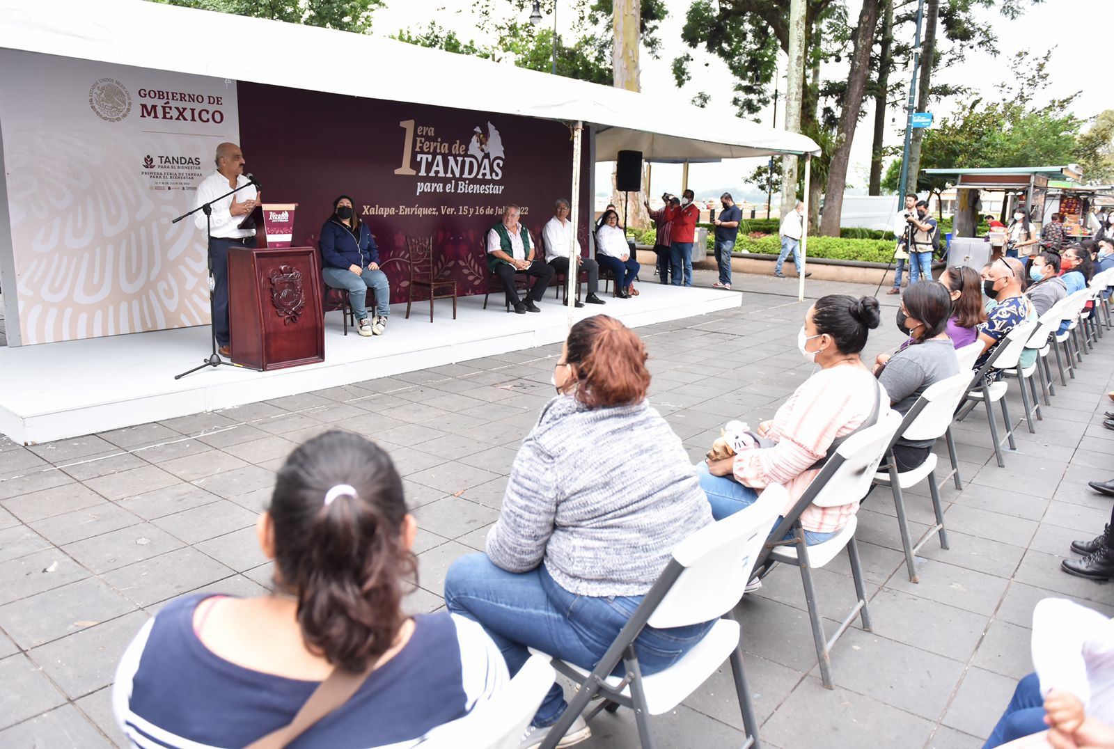 Durante la inauguración de la Primera Feria de Tandas para el Bienestar que estará en el parque Benito Juárez los días 15 y 16 de julio, el Presidente Municipal reconoció la colocación de más de 100 mil de estos créditos en la entidad, de los cuales cerca de 5 mil se han entregado en Xalapa.