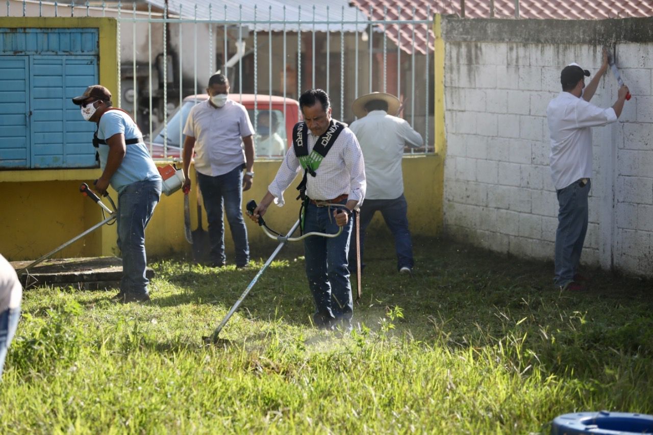 Coatepec, Ver.- Debido al regreso a clases presenciales, la campaña Tequio por mi Escuela sigue estando vigente, por ello el gobernador Cuitláhuac García Jiménez junto con sus colaboradores acudieron al Jardín de Niños Xoxhitlan, que se ubica en la localidad La Orduña.