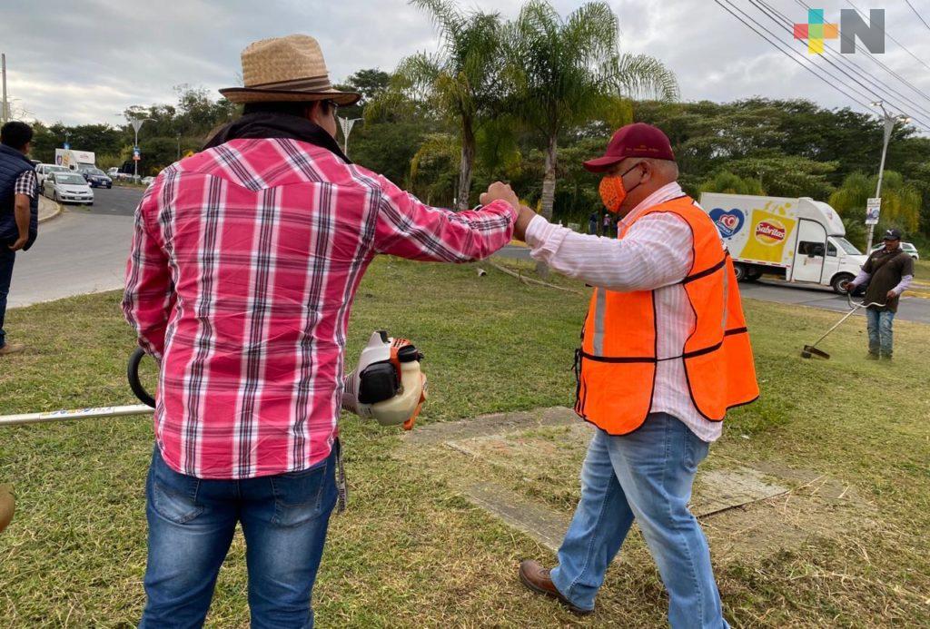Antes de las 7 de la mañana, colaboradores de diferentes áreas de esta dependencia iniciaron con los trabajos de chapeo en los camellones.