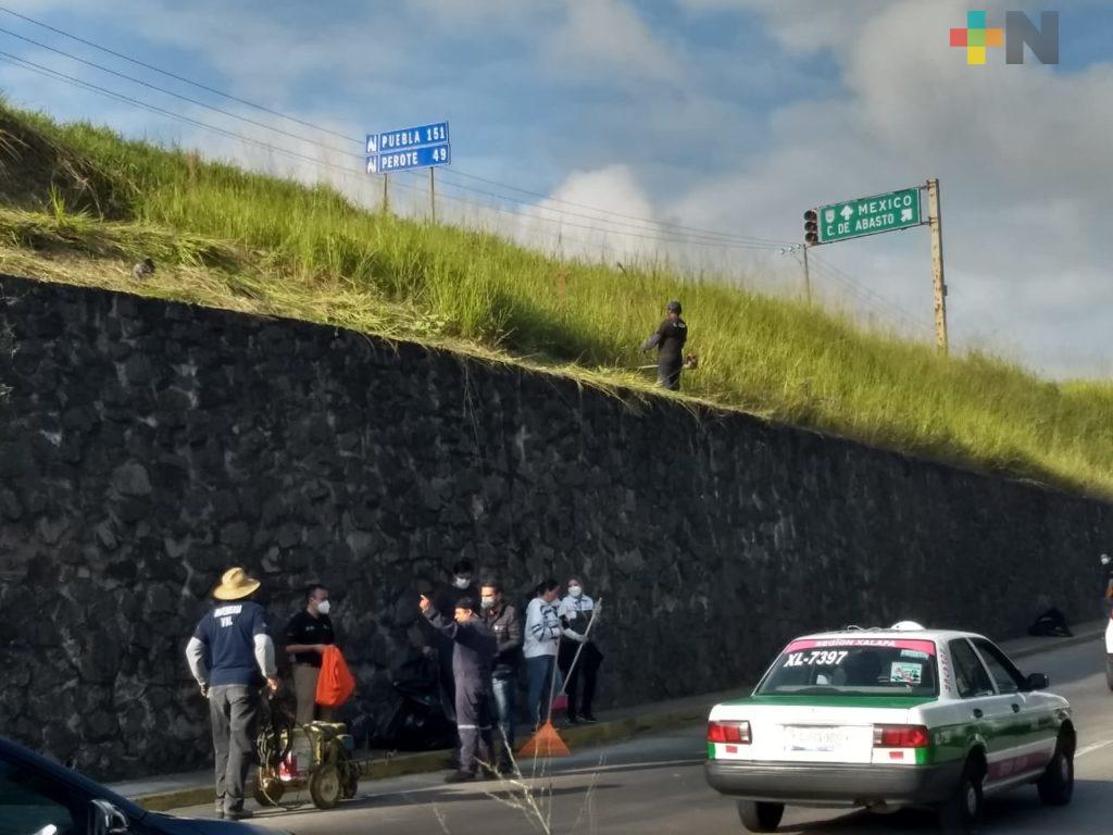 Xalapa, Ver.- El secretario de Gobierno en Veracruz, Eric Cisneros Burgos, participó este sábado en la jornada de limpieza que trabajadores de esta dependencia realizaron en los retornos a la Central de Abastos, del Caracol de Las Trancas.