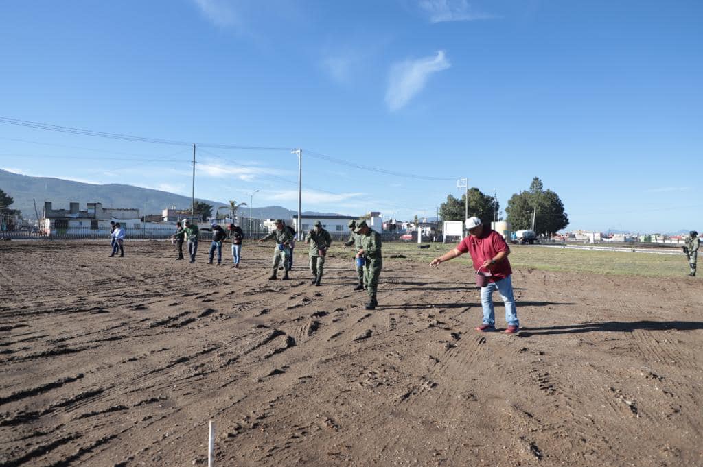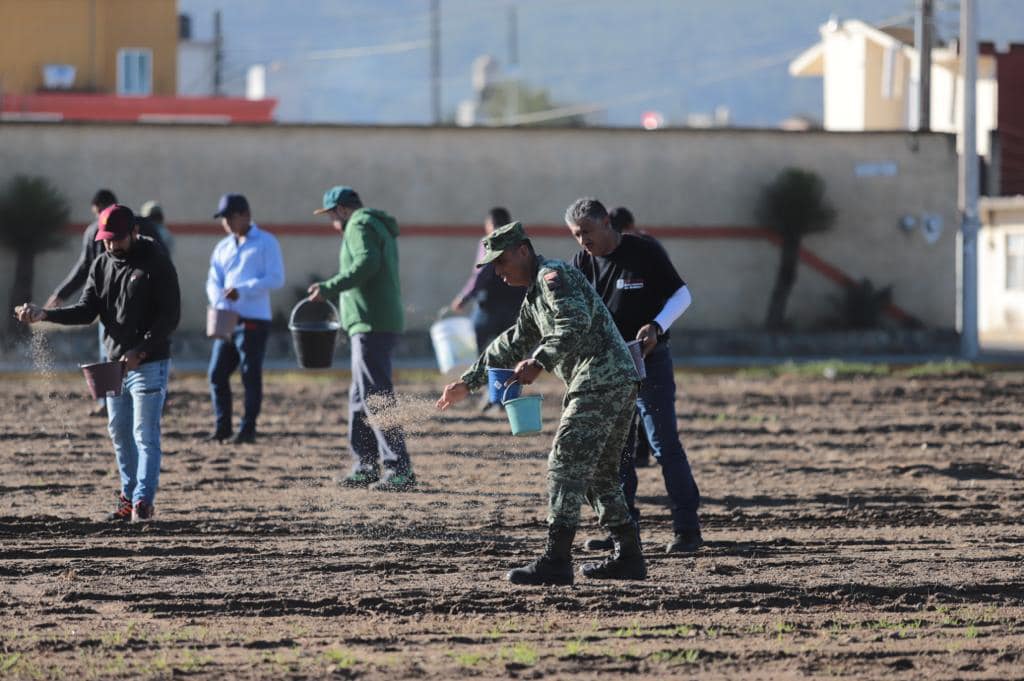 Por eso, bien temprano visité la Fortaleza de San Carlos en Perote, donde participé junto con elementos del 111 Batallón del Ejército Mexicano y compañeros de la Coordinación Estatal de la Junta de Mejoras, en la jornada de reforestación en las inmediaciones del inmueble, así como en la siembra de semilla de pasto.